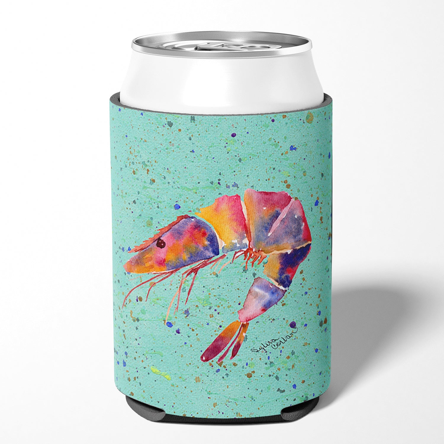 Decorate your space with our Shrimp artwork on a Hugger. Introducing our Can or Bottle Hugger, a must-have accessory for your beverage enjoyment. Designed to perfectly fit any standard 12-ounce can, this can cooler is the ideal companion to keep your soda, beer, or any drink of your choice at the perfect temperature. Our can hugger is not just functional, it's a work of art. Featuring full-color artwork that's permanently dyed into the foam, this hugger promises a design that's fade-resistant and made to last, making your beverage stand out in style. The design isn't silk-screened, which ensures the vibrancy of the colors, offering you a long-lasting, appealing aesthetic. What sets our can hugger apart is its high-quality foam fabric, which is not only durable but also machine washable for easy maintenance. Whether you call it a huggie, can coolie, can cozie, or beer holder, this drink sleeve brings style and function together. Proudly designed, printed, and sewn in the USA, our Can or Bottle Hugger is an ideal addition to your beverage experience. Match it with one of our insulated coolers for a complete gift set, adding flair and convenience to your drink enjoyment.