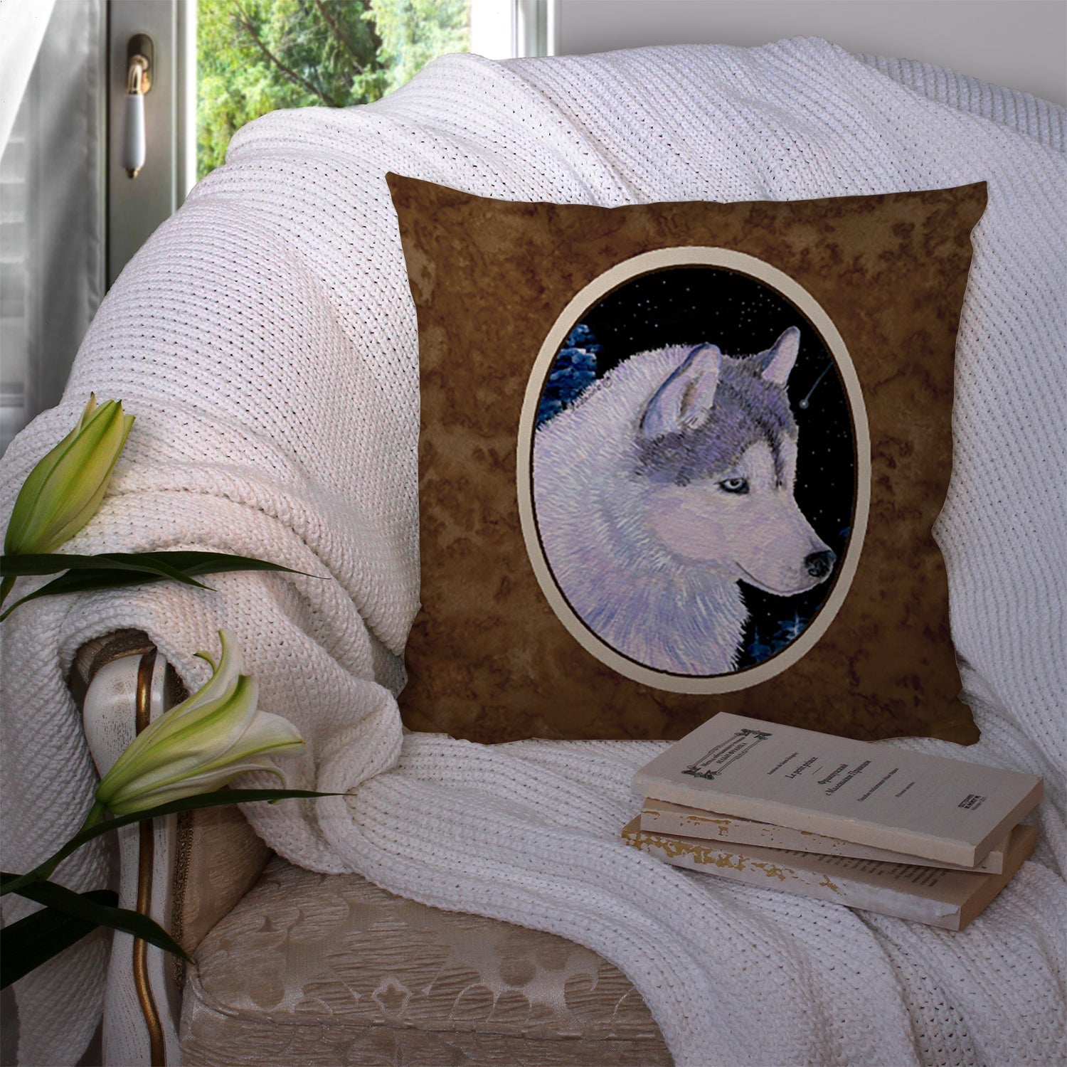 Decorate your space with our Siberian Husky artwork on a Pillow. Add a touch of vibrancy and comfort to your outdoor seating with Caroline's Treasures Fabric Decorative Pillow. Measuring approximately 14 inches by 14 inches, this outdoor pillow is crafted to elevate the appeal of your patio furniture, infusing it with vivid color and artistic flair. The pillow includes a 100% Polyester Fabric sham filled with a quality pillow form to provide superior comfort. Innovatively made from our brand new material, specifically woven for its water resistance, this pillow is designed for durability. The soft canvas fabric offers versatility in use, fit for your indoor couch or your outdoor patio, porch, or veranda. The fabric is dyed with colorfast dyes built for resilience against weather conditions, ensuring the pillow retains its beauty over time. Constructed by sewing three fabric pieces to create a sham, the polyester insert is then nestled inside to form the pillow, resulting in an overstuffed pillow that maintains its shape. Both the sham and the pillow insert are proudly made in the United States. As the pillows are handcrafted, there may be minor variations in size, further enhancing their unique charm. Experience comfort in style with Caroline's Treasures Fabric Decorative Pillow.