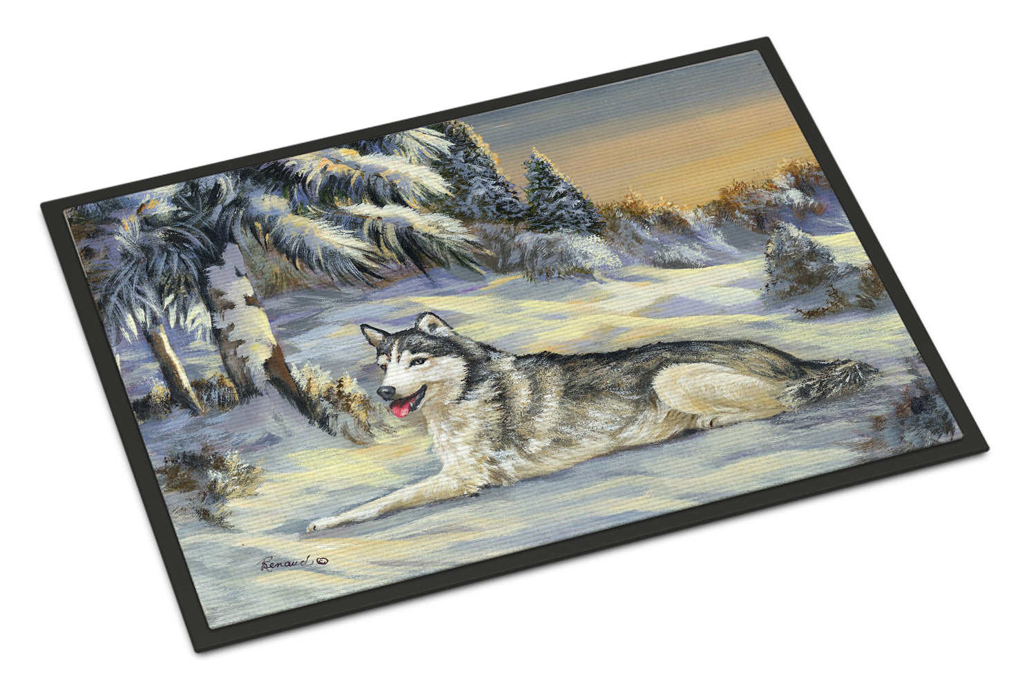 Decorate your space with our Siberian Husky artwork on a Doormat. Bring a bit of Winter into your home with a Winter Doormat. Welcome your guests in style with our Artwork Door Mat, designed to withstand almost any weather condition. This mat, measuring approximately 18 by 27 inches, is held together by durable black binding tape. Its top layer, composed of polyester felt, is dyed with the eye-catching image you see on the mat. A few layers below provide the mat with stability, while its rubber bottom is stamped to help prevent slipping and ensures safety. Our mat works wonderfully as both an indoor or outdoor door mat. For cleaning, simply hose it off with water or use a power washer - no need for any cleaner that produces suds. Avoid scrubbing with a brush, instead, opt for the vacuum on floor setting. Designed manufactured and printed in the USA, this mat is a perfect addition to your porch, outdoor kitchen, entryway, or any indoor space. Its unique design makes it a charming decorative rug that greets your guests and adds a stylish touch to your home decor.