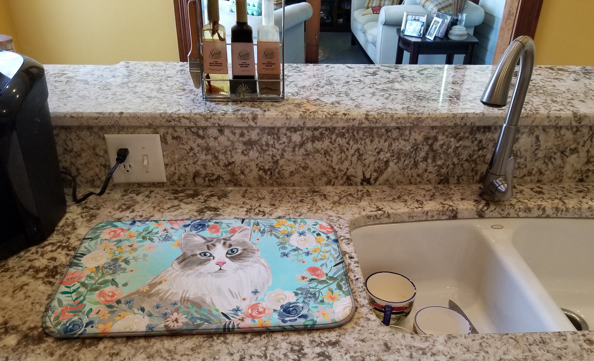 Decorate your space with our Siberian artwork on a Dish Drying Mat. Say goodbye to messy countertops and soggy dish towels with our innovative dish drying mat. Our high-quality dish drying pad is designed to keep your countertops dry while offering a stylish and efficient solution. Whether you're air drying dishes, glasses, stemware, silverware, pots, pans, bottles, or even fruits and vegetables, our dish mat is the perfect choice. The 14 inches x 22 inches size fits most counters and dish drying racks, and the non-slip design ensures stability. Made with water-absorbent polyester and a polyurethane foam insert, our dish drying mat is not only functional but also durable. It's machine washable and printed in the USA for long-lasting use. The beautiful artwork adds flair to your kitchen decor, making it a perfect housewarming gift or present for any occasion. Upgrade your kitchen experience with our absorbent and versatile dish drying mat.