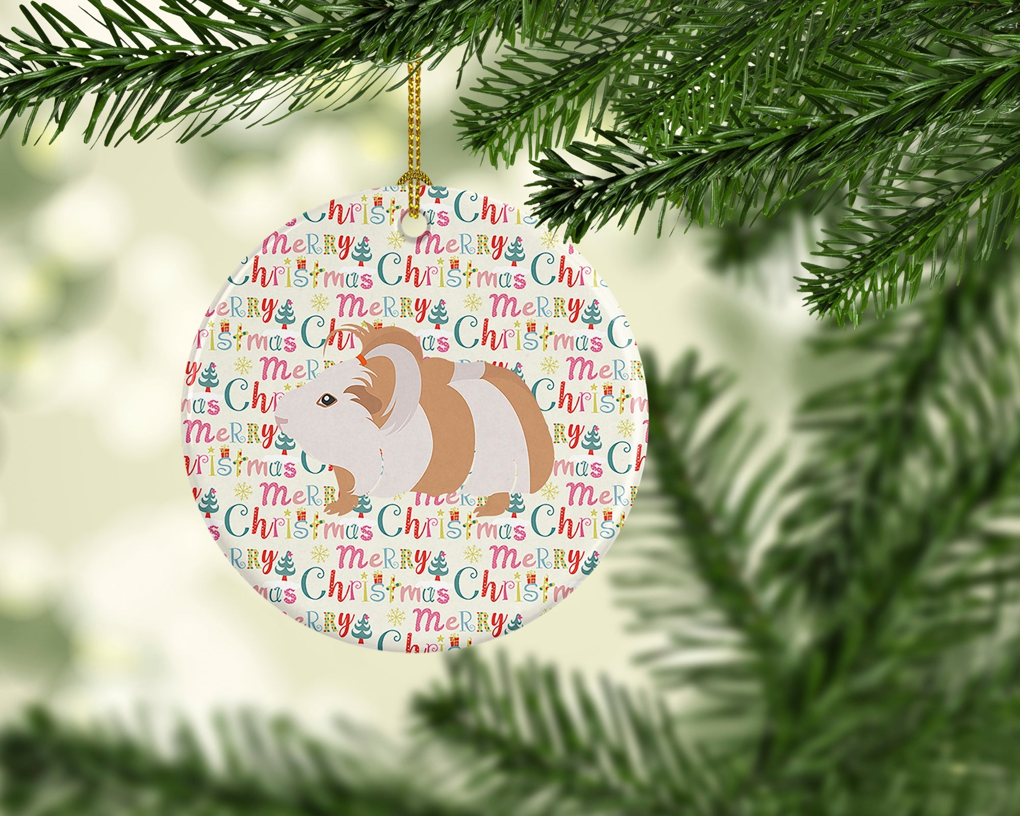 Decorate your space with our Christmas Silkie Guinea Pig artwork on a Ornament. Add a touch of personalized charm to your Christmas tree this holiday season with our Ceramic Ornament. Measuring 2.8125 inches in diameter, this round porcelain ornament beautifully reflects your festive lights, enhancing your holiday decor. The gloss surface sets off the vibrant, full-color artwork contributed by one of our talented artists, bringing a pop of color and joy to your tree. This Ceramic Ornament doesn't stop at being merely decorative. The white back is designed for personalization. Write a heartfelt message, mark a special year, or inscribe a date with a paint pen or a permanent marker to create a treasured memento. Please ensure you allow any personalization to dry thoroughly before handling to maintain the pristine finish. Included with the ornament is a delicate gold cord for easy hanging. Made in the USA, this Ceramic Ornament makes an exceptional gift for a pet sitter, teacher, family member, or anyone you wish to share a little Christmas magic with. With its blend of style, charm, and personal touch, it's a meaningful addition to any Christmas tree.