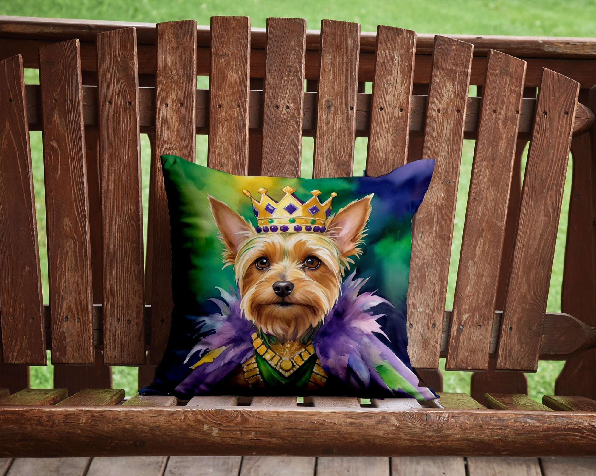 Throw Pillow featuring breed specific Silky Terrier artwork. Celebrate Mardi Gras with this Mardi Gras Pillow. Add a touch of vibrancy and comfort to your outdoor seating with Caroline's Treasures Fabric Decorative Pillow. Measuring approximately 14 inches by 14 inches, this outdoor pillow is crafted to elevate the appeal of your patio furniture, infusing it with vivid color and artistic flair. The pillow includes a 100% Polyester Fabric sham filled with a quality pillow form to provide superior comfort. Innovatively made from our brand new material, specifically woven for its water resistance, this pillow is designed for durability. The soft canvas fabric offers versatility in use, fit for your indoor couch or your outdoor patio, porch, or veranda. The fabric is dyed with colorfast dyes built for resilience against weather conditions, ensuring the pillow retains its beauty over time. Constructed by sewing three fabric pieces to create a sham, the polyester insert is then nestled inside to form the pillow, resulting in an overstuffed pillow that maintains its shape. Both the sham and the pillow insert are proudly made in the United States. As the pillows are handcrafted, there may be minor variations in size, further enhancing their unique charm. Experience comfort in style with Caroline's Treasures Fabric Decorative Pillow.