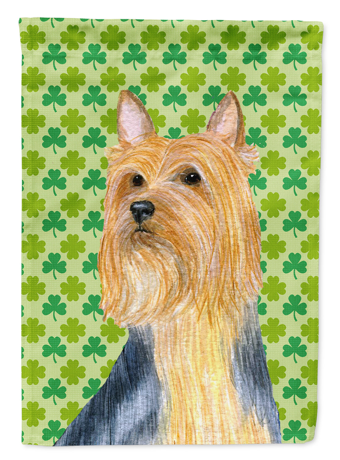 Decorate your space with our St Patrick's Day Silky Terrier artwork on a Large Flag. Presenting our Heavy Duty Polyester House Size Decorative Sleeve Pole Flag, a vibrant addition to enhance the aesthetic appeal of your home. This large decorative flag, measuring approximately 28 x 40 inches, offers ample coverage and visibility. Each flag is meticulously sewn and made individually, ensuring a unique piece that may slightly vary in size. It's a sleeve pole flag, designed to fit a standard decorative flag pole effortlessly. Please note that the flag pole and bracket are not included and should be purchased separately. What sets our flag apart is its dual-sided print. The design is mirrored on both sides of the fabric, allowing for uniform visibility regardless of the angle. Printed in full color, our flag showcases vibrant hues that truly stand out. To ensure lasting vibrancy and durability, the dyes are heat-set into the fabric. This ensures your flag remains bright and captivating through various weather conditions. Elevate the look of your home with our Heavy Duty Polyester House Size Decorative Sleeve Pole Flag!