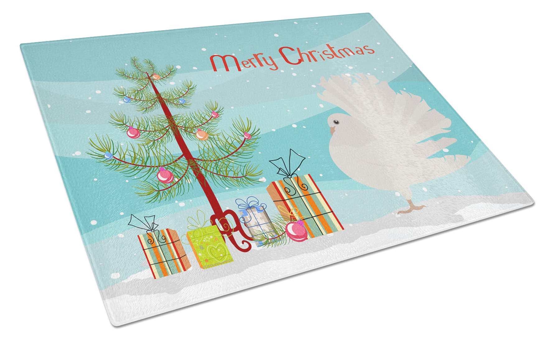 Decorate your space with our Christmas Silver Fantail Pigeon artwork on a Cutting Board. Introduce your kitchen to the vibrant, large Decorative Glass Cutting Board from Caroline's Treasures. Crafted from resilient tempered glass, this board is not only a utilitarian necessity but also a colorful art piece. With its generous dimensions of 15 inches in height and 12 inches in length, it offers ample space for all your cutting needs. Every piece showcases captivating artwork from distinguished artists, bringing an aesthetic edge to your kitchen. Beyond its attractive design, this cutting board ensures your countertop stays pristine and unscathed, owing to its heat-resistant properties. Engineered with user convenience in mind, it features non-skid feet for stability, and rounded corners for additional safety. Its robust construction renders it virtually unbreakable, guaranteeing longevity. The board comes with protective feet bumpers, maintaining its position during use. This product is recommended to be hand washed only. Proudly printed and assembled in the United States, this cutting board exemplifies superior craftsmanship. With Caroline's Treasures' Decorative Glass Cutting Board, you're investing in a blend of functionality and artistic flair.