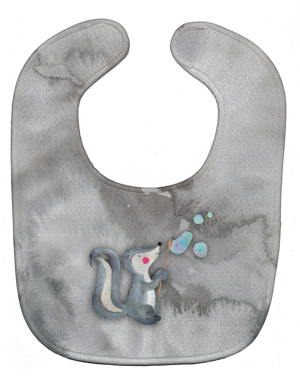 Decorate your space with our Skunk artwork on a Baby Bib. Cute and Functional. Dyed plush fabric baby bib with Velcro closure. Made of ultra-smooth micro-mink polyester that reverses to 100% cotton terry loops. Measures 10 inches x 13 inches, 0.8 oz. per piece. Edges are finished with binding. Machine washable and dry on low heat. Fade resistant and stain resistant. Top fabric gets even softer after the first wash.