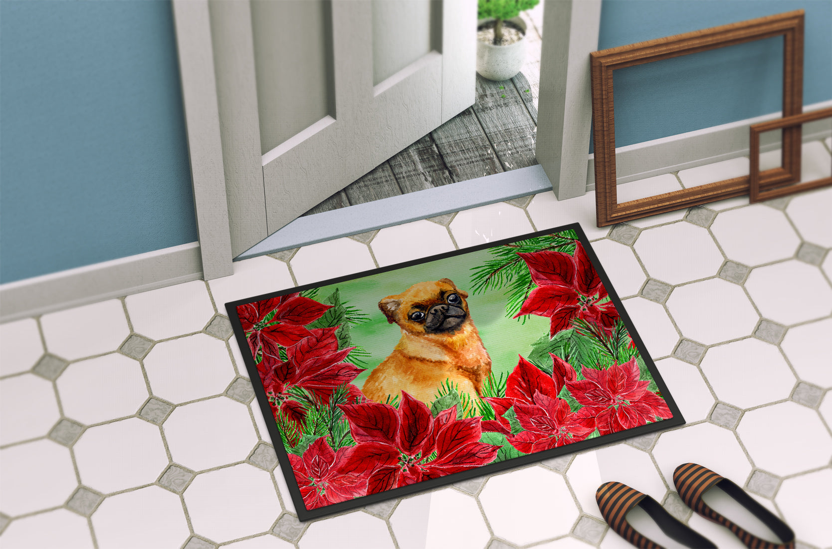 Small Brabant Griffon Poinsettas Doormat - 18x27 Decorative Floor Mat – Indoor/Outdoor Rug with Artistic Flair CK1315MAT
