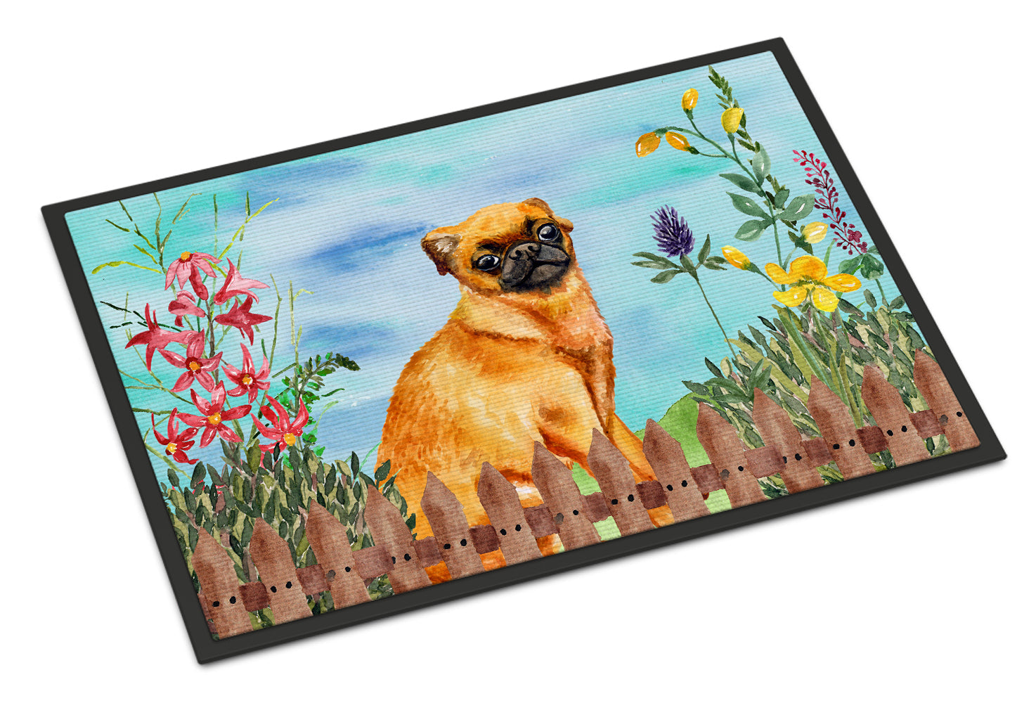 Decorate your space with our Brussels Griffon artwork on a Doormat. Bring a bit of Spring into your home with a Spring Doormat. Welcome your guests in style with our Artwork Door Mat, designed to withstand almost any weather condition. This mat, measuring approximately 24 by 36 inches, is held together by durable black binding tape. Its top layer, composed of polyester felt, is dyed with the eye-catching image you see on the mat. A few layers below provide the mat with stability, while its rubber bottom is stamped to help prevent slipping and ensures safety. Our mat works wonderfully as both an indoor or outdoor door mat. For cleaning, simply hose it off with water or use a power washer - no need for any cleaner that produces suds. Avoid scrubbing with a brush, instead, opt for the vacuum on floor setting. Designed manufactured and printed in the USA, this mat is a perfect addition to your porch, outdoor kitchen, entryway, or any indoor space. Its unique design makes it a charming decorative rug that greets your guests and adds a stylish touch to your home decor.
