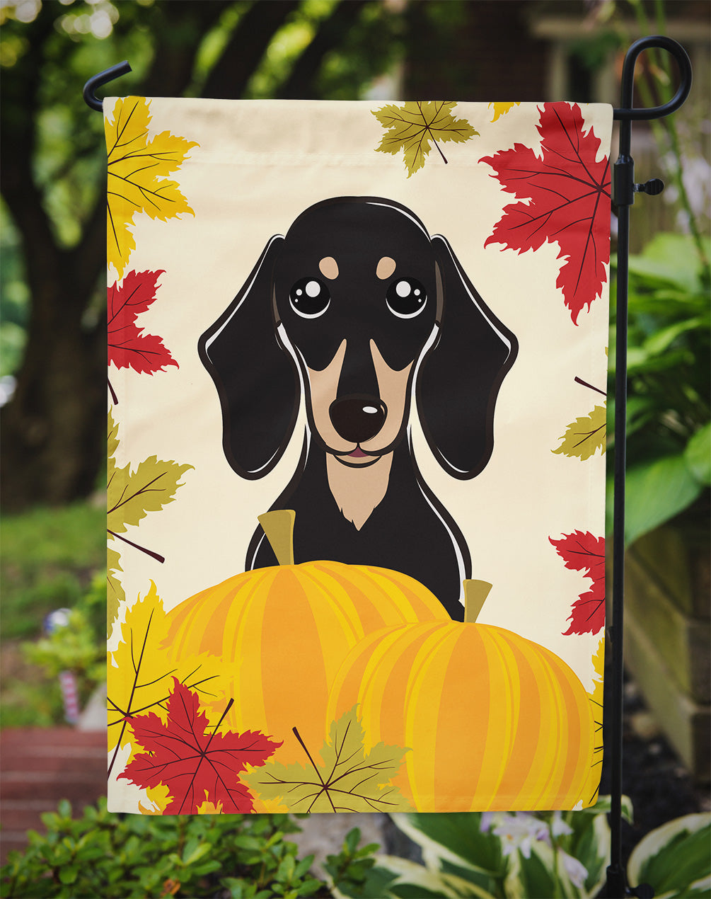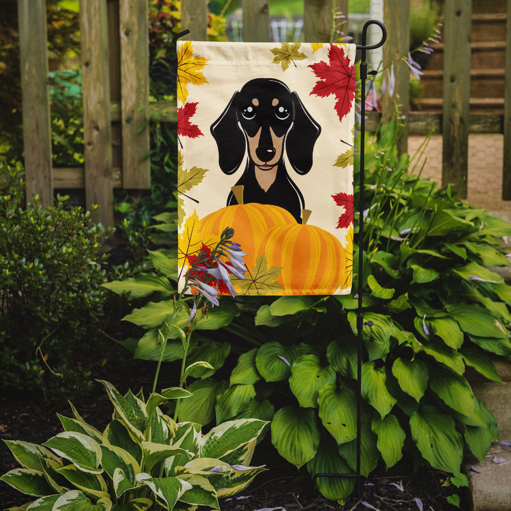 Decorate your space with our Thanksgiving Dachshund artwork on a Garden Flag. Enhance the beauty of your garden, patio, or yard with Caroline's Treasures Decorative Garden Flag, proudly made in the USA. Crafted from two pieces of thick, double-sided polyester fabric, this 2-ply garden flag is designed to withstand various weather conditions, making it water-resistant and weatherproof. Featuring correctly readable words on both sides, this garden flag offers a delightful visual experience from any angle. With its heavier weight, it stands out among other garden flags, ensuring stability and durability even in wind, rain, and snow. Measuring approximately 11 1/4 inches by 15 1/2 inches, this flag allows you to personalize your outdoor decor. It comes with a 1 1/2-inch sleeve sewn in, allowing easy attachment to any standard garden flag stand or garden size porch hanger (sold separately). Make a statement in your outdoor space with Caroline's Treasures Decorative Garden Flag, a vibrant and high-quality flag that adds color and personality to your surroundings. Proudly made in the USA, it's a symbol of quality craftsmanship and attention to detail.