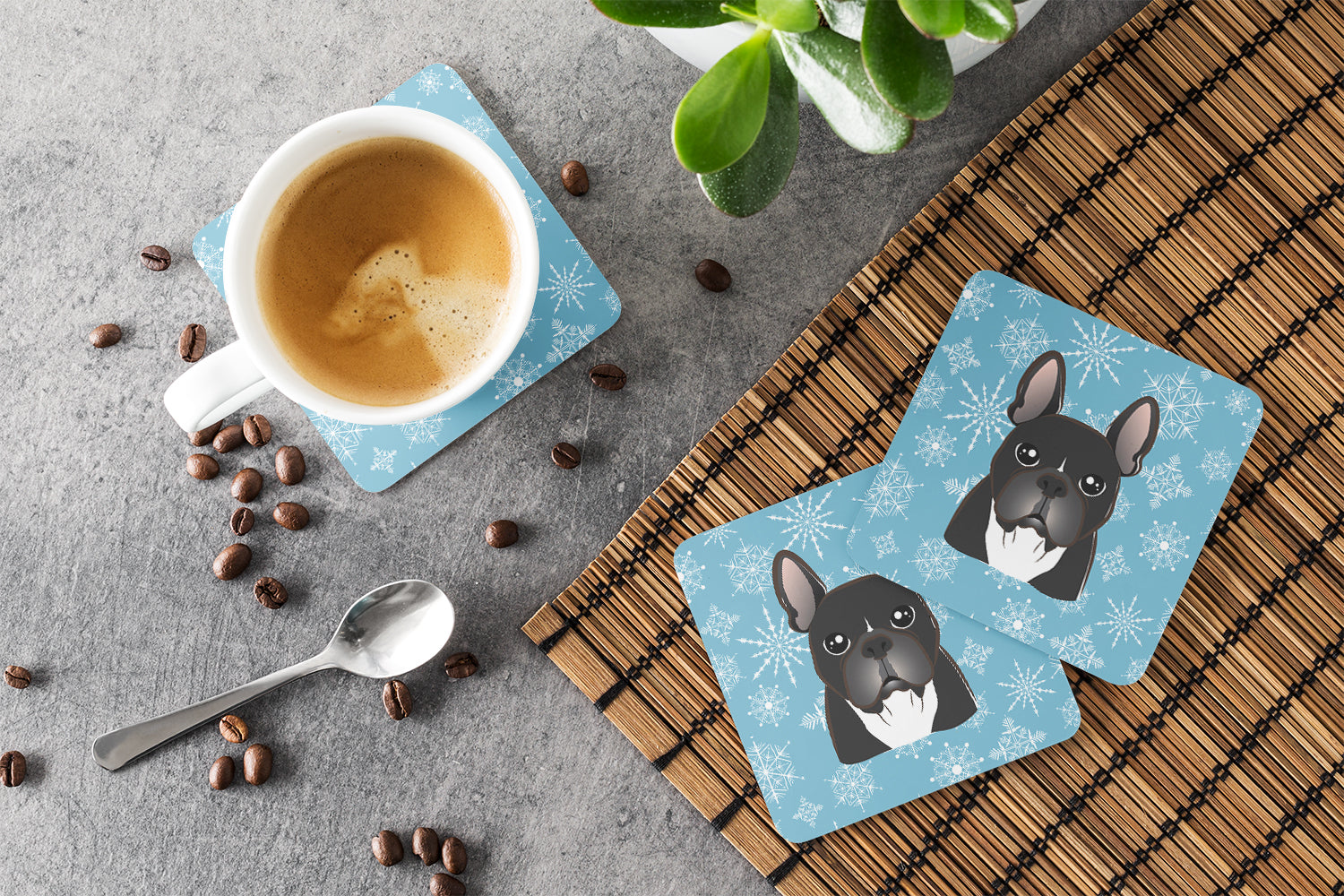 Decorate your space with our Christmas French Bulldog artwork on a Coaster set. Presenting our Set of 4 Foam Coasters, a stylish and practical addition to your table setting. Each square coaster, measuring 3 1/2 inches by 3 1/2 inches, is perfectly sized to accommodate various drinkware, from coffee mugs to tumblers. These coasters stand out with their full-color artwork, permanently dyed onto the material for a vibrant and fade-resistant finish. They're not just functional, they're a fashionable statement, adding a touch of flair to any gathering or event. Our foam coasters serve a dual purpose - they protect your table from water stains and are perfect for both hot and cold drinks. The material used is similar to that of our high-quality mouse pads, ensuring durability and heat resistance. These coasters are easy to maintain - simply wash them in the top of your dishwasher and lay flat to dry. The design won't come off, ensuring they retain their vivid colors for years. Pair them with one of our insulated coolers or huggers for a cohesive, thoughtful gift set. Enhance your beverage experience with our Set of 4 Foam Coasters.
