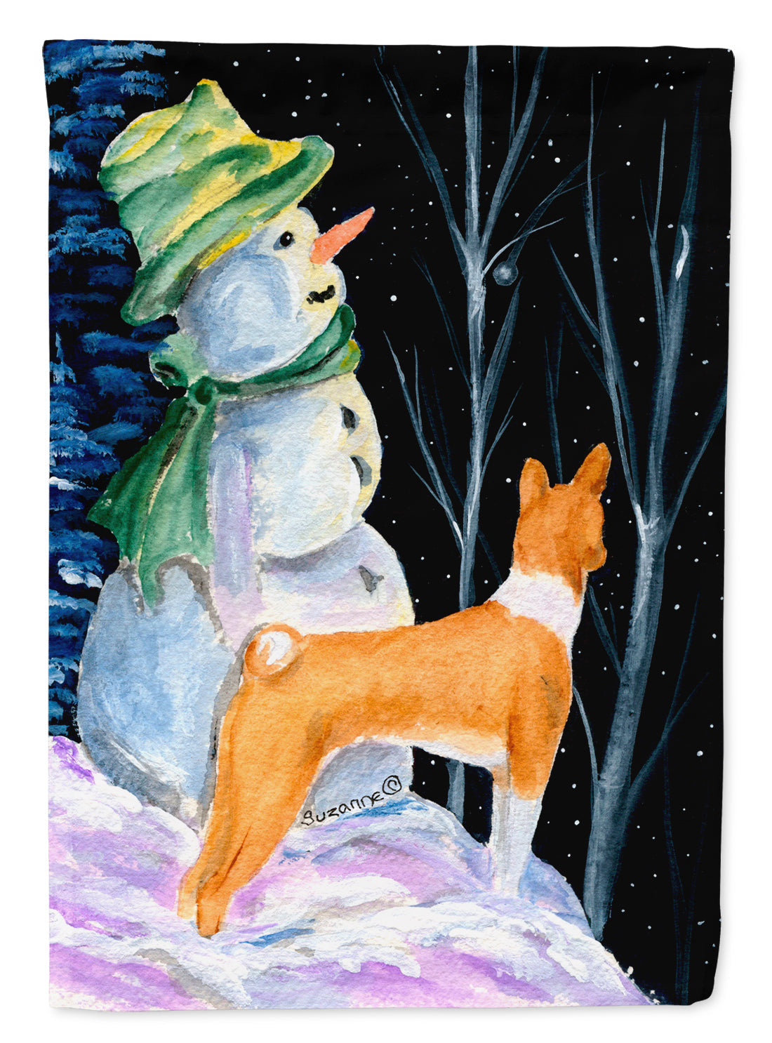 Decorate your space with our Christmas Basenji artwork on a Large Flag. Presenting our Heavy Duty Polyester House Size Decorative Sleeve Pole Flag, a vibrant addition to enhance the aesthetic appeal of your home. This large decorative flag, measuring approximately 28 x 40 inches, offers ample coverage and visibility. Each flag is meticulously sewn and made individually, ensuring a unique piece that may slightly vary in size. It's a sleeve pole flag, designed to fit a standard decorative flag pole effortlessly. Please note that the flag pole and bracket are not included and should be purchased separately. What sets our flag apart is its dual-sided print. The design is mirrored on both sides of the fabric, allowing for uniform visibility regardless of the angle. Printed in full color, our flag showcases vibrant hues that truly stand out. To ensure lasting vibrancy and durability, the dyes are heat-set into the fabric. This ensures your flag remains bright and captivating through various weather conditions. Elevate the look of your home with our Heavy Duty Polyester House Size Decorative Sleeve Pole Flag!