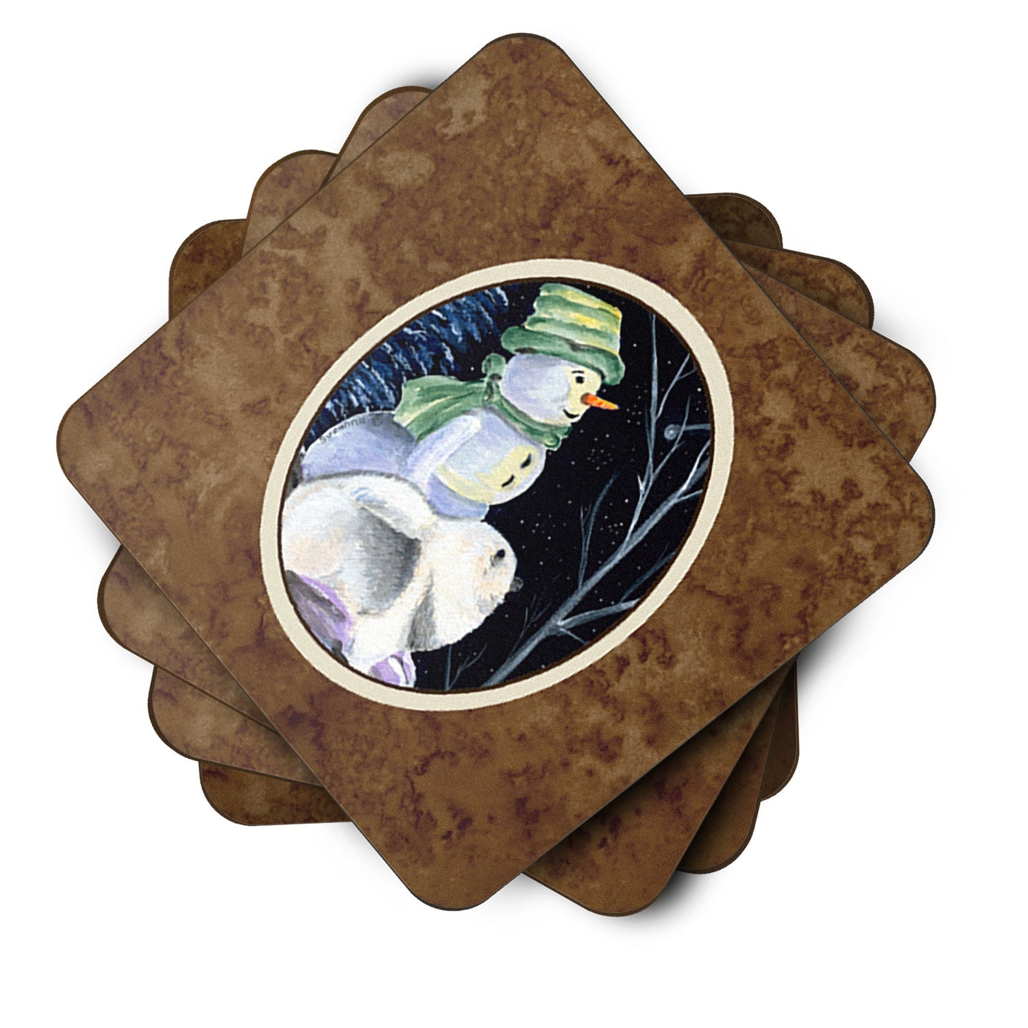 Decorate your space with our Christmas Keeshond artwork on a Coaster set. Presenting our Set of 4 Foam Coasters, a stylish and practical addition to your table setting. Each square coaster, measuring 3 1/2 inches by 3 1/2 inches, is perfectly sized to accommodate various drinkware, from coffee mugs to tumblers. These coasters stand out with their full-color artwork, permanently dyed onto the material for a vibrant and fade-resistant finish. They're not just functional, they're a fashionable statement, adding a touch of flair to any gathering or event. Our foam coasters serve a dual purpose - they protect your table from water stains and are perfect for both hot and cold drinks. The material used is similar to that of our high-quality mouse pads, ensuring durability and heat resistance. These coasters are easy to maintain - simply wash them in the top of your dishwasher and lay flat to dry. The design won't come off, ensuring they retain their vivid colors for years. Pair them with one of our insulated coolers or huggers for a cohesive, thoughtful gift set. Enhance your beverage experience with our Set of 4 Foam Coasters.