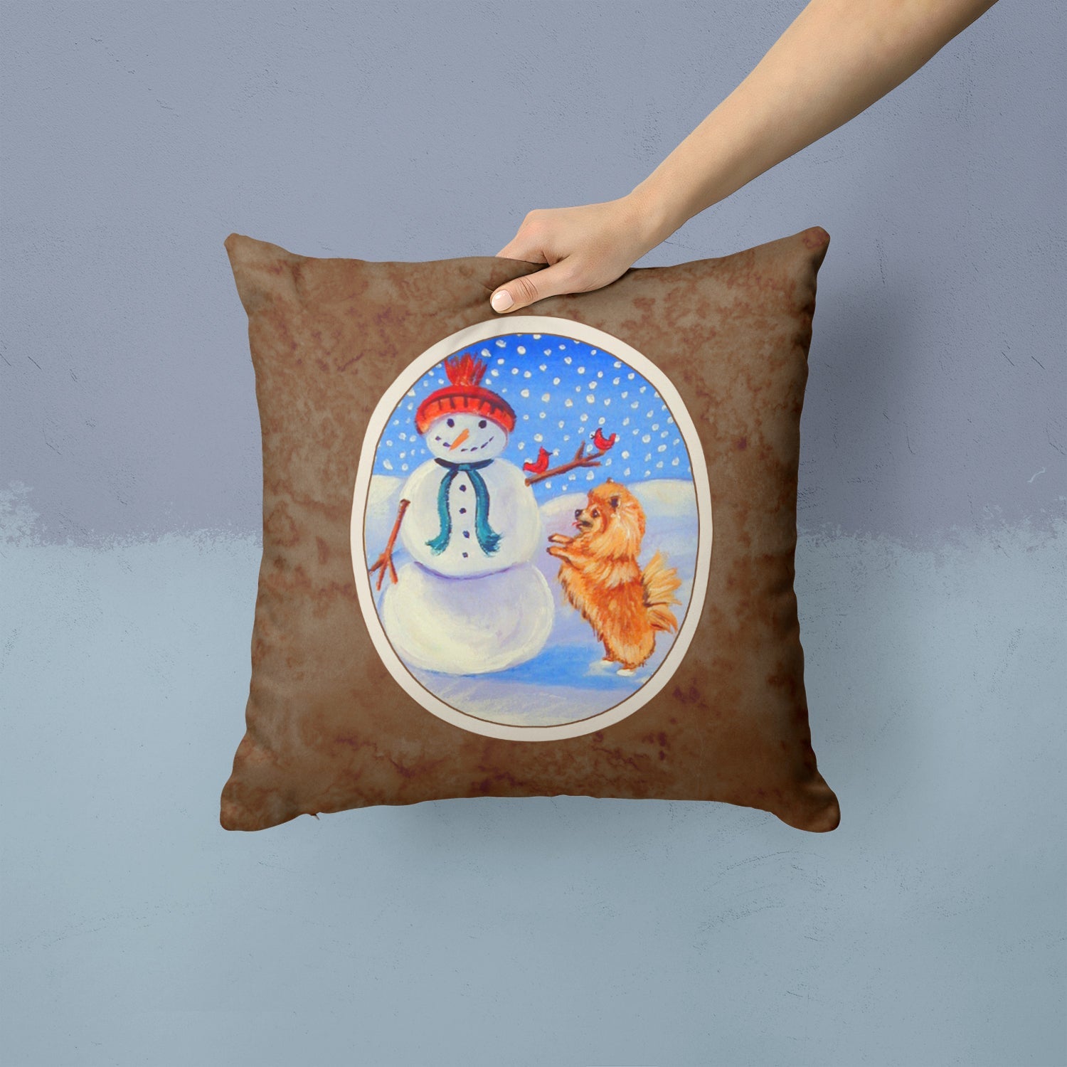 Decorate your space with our Christmas Pomeranian artwork on a Pillow. Bring a bit of Winter into your home with a Winter Pillow. Add a touch of vibrancy and comfort to your outdoor seating with Caroline's Treasures Fabric Decorative Pillow. Measuring approximately 14 inches by 14 inches, this outdoor pillow is crafted to elevate the appeal of your patio furniture, infusing it with vivid color and artistic flair. The pillow includes a 100% Polyester Fabric sham filled with a quality pillow form to provide superior comfort. Innovatively made from our brand new material, specifically woven for its water resistance, this pillow is designed for durability. The soft canvas fabric offers versatility in use, fit for your indoor couch or your outdoor patio, porch, or veranda. The fabric is dyed with colorfast dyes built for resilience against weather conditions, ensuring the pillow retains its beauty over time. Constructed by sewing three fabric pieces to create a sham, the polyester insert is then nestled inside to form the pillow, resulting in an overstuffed pillow that maintains its shape. Both the sham and the pillow insert are proudly made in the United States. As the pillows are handcrafted, there may be minor variations in size, further enhancing their unique charm. Experience comfort in style with Caroline's Treasures Fabric Decorative Pillow.
