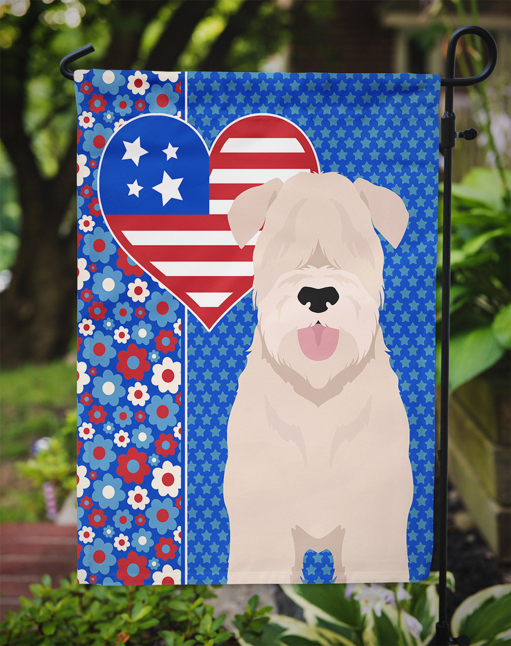 Soft Coated Wheaten Terrier Patriotic Heart Garden Flag – Red, White & Blue Dog Decor with Star Background