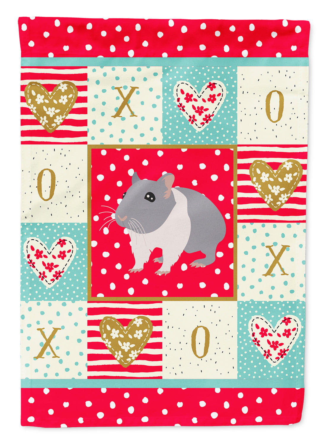 Decorate your space with our Valentine's Day South African Hamster artwork on a Garden Flag. Enhance the beauty of your garden, patio, or yard with Caroline's Treasures Decorative Garden Flag, proudly made in the USA. Crafted from two pieces of thick, double-sided polyester fabric, this 2-ply garden flag is designed to withstand various weather conditions, making it water-resistant and weatherproof. Featuring correctly readable words on both sides, this garden flag offers a delightful visual experience from any angle. With its heavier weight, it stands out among other garden flags, ensuring stability and durability even in wind, rain, and snow. Measuring approximately 11 1/4 inches by 15 1/2 inches, this flag allows you to personalize your outdoor decor. It comes with a 1 1/2-inch sleeve sewn in, allowing easy attachment to any standard garden flag stand or garden size porch hanger (sold separately). Make a statement in your outdoor space with Caroline's Treasures Decorative Garden Flag, a vibrant and high-quality flag that adds color and personality to your surroundings. Proudly made in the USA, it's a symbol of quality craftsmanship and attention to detail.