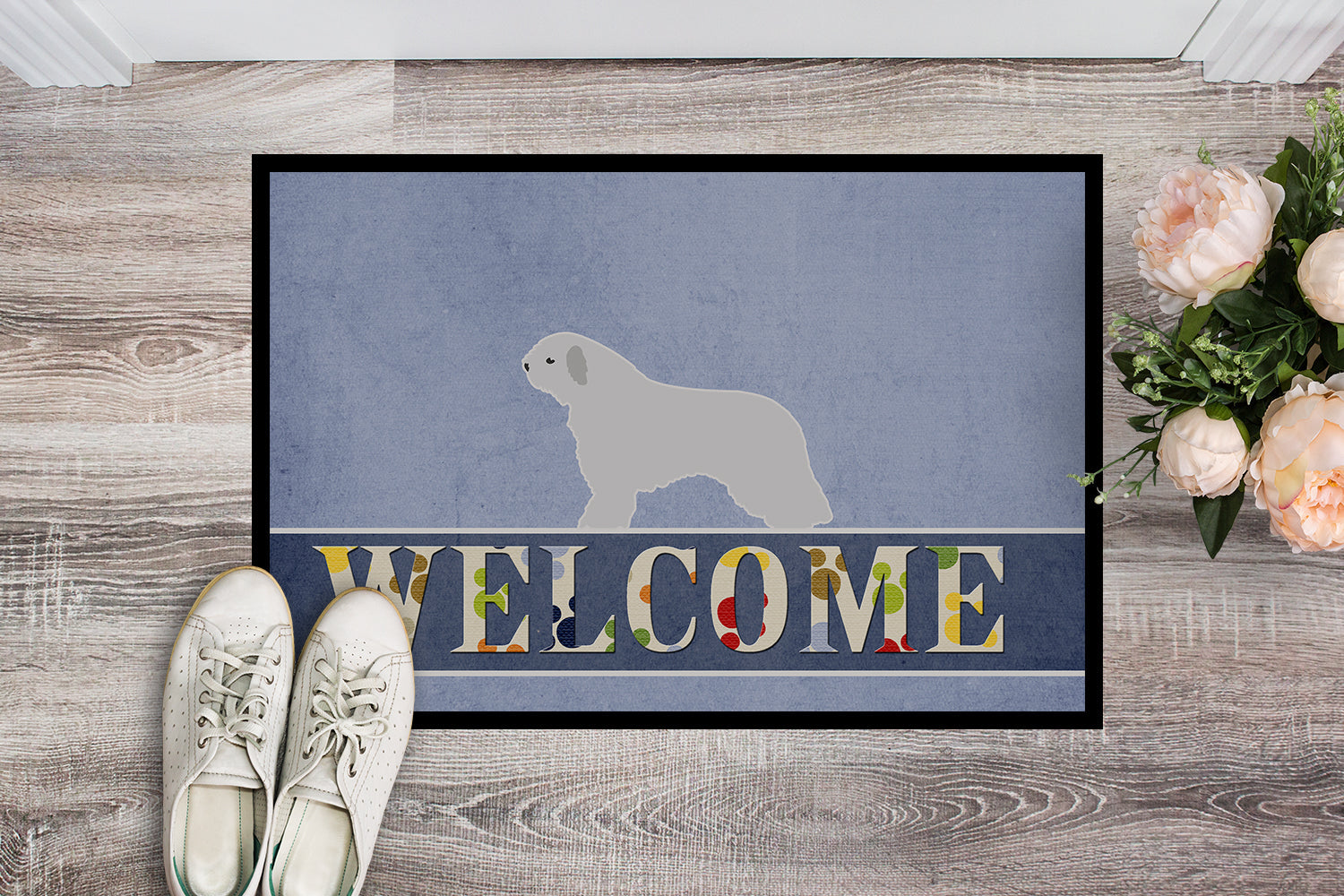 Decorate your space with our Spanish Water Dog artwork on a Doormat. Welcome your guests in style with our Artwork Door Mat, designed to withstand almost any weather condition. This mat, measuring approximately 18 by 27 inches, is held together by durable black binding tape. Its top layer, composed of polyester felt, is dyed with the eye-catching image you see on the mat. A few layers below provide the mat with stability, while its rubber bottom is stamped to help prevent slipping and ensures safety. Our mat works wonderfully as both an indoor or outdoor door mat. For cleaning, simply hose it off with water or use a power washer - no need for any cleaner that produces suds. Avoid scrubbing with a brush, instead, opt for the vacuum on floor setting. Designed manufactured and printed in the USA, this mat is a perfect addition to your porch, outdoor kitchen, entryway, or any indoor space. Its unique design makes it a charming decorative rug that greets your guests and adds a stylish touch to your home decor.