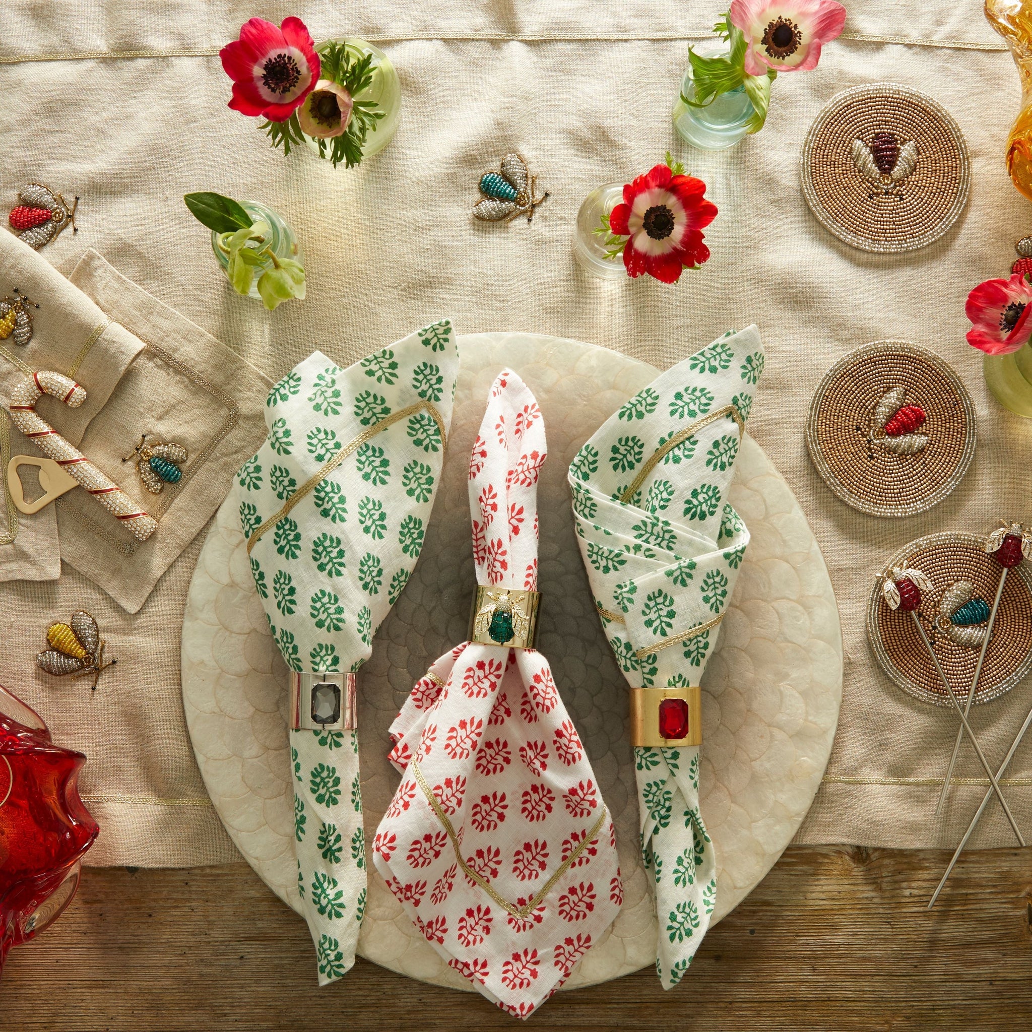 LOVE all the yummy colours in these cocktail napkins and they make a perfect set with the sparkle bee coasters! These are Hand beaded and so fun as a hostess gift! Or pair with one of our candy coloured Sparkle Bee hanging ornaments for a super joyful gift!