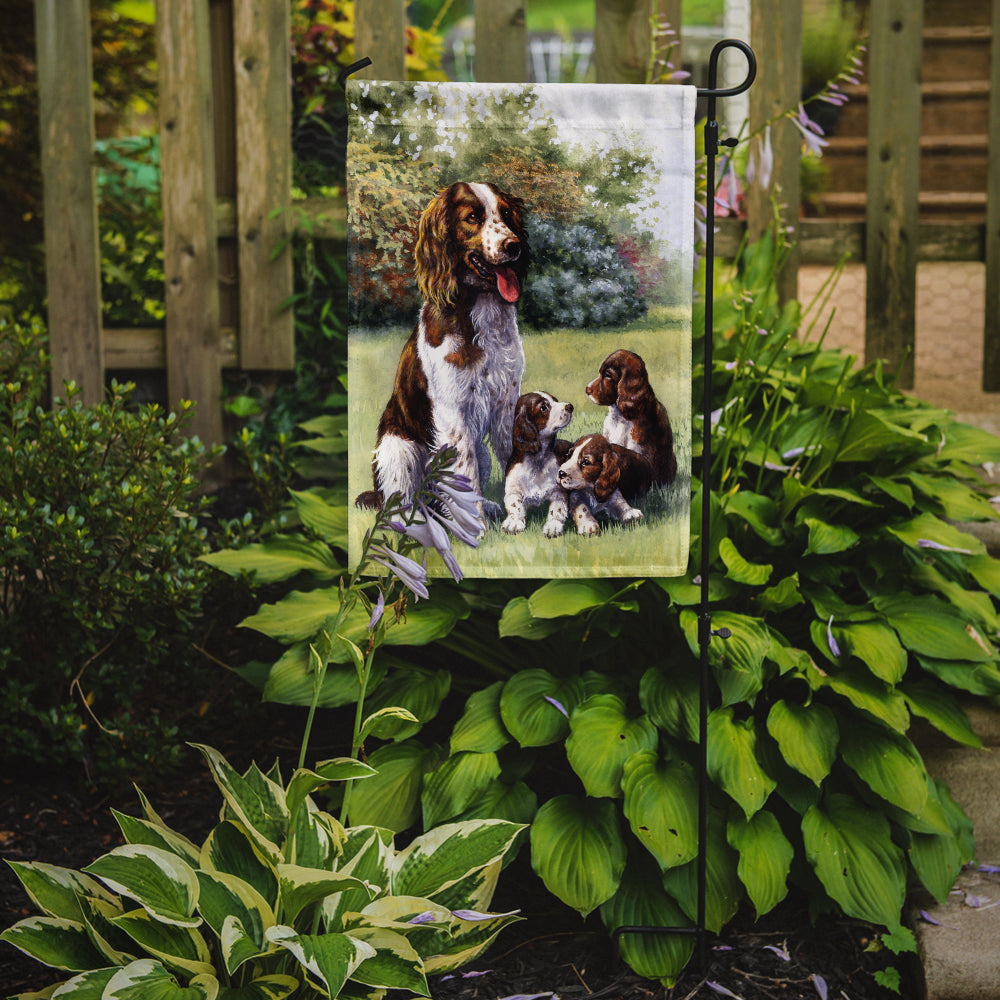 Decorate your space with our English Springer Spaniel artwork on a Garden Flag. Enhance the beauty of your garden, patio, or yard with Caroline's Treasures Decorative Garden Flag, proudly made in the USA. Crafted from two pieces of thick, double-sided polyester fabric, this 2-ply garden flag is designed to withstand various weather conditions, making it water-resistant and weatherproof. Featuring correctly readable words on both sides, this garden flag offers a delightful visual experience from any angle. With its heavier weight, it stands out among other garden flags, ensuring stability and durability even in wind, rain, and snow. Measuring approximately 11 1/4 inches by 15 1/2 inches, this flag allows you to personalize your outdoor decor. It comes with a 1 1/2-inch sleeve sewn in, allowing easy attachment to any standard garden flag stand or garden size porch hanger (sold separately). Make a statement in your outdoor space with Caroline's Treasures Decorative Garden Flag, a vibrant and high-quality flag that adds color and personality to your surroundings. Proudly made in the USA, it's a symbol of quality craftsmanship and attention to detail.