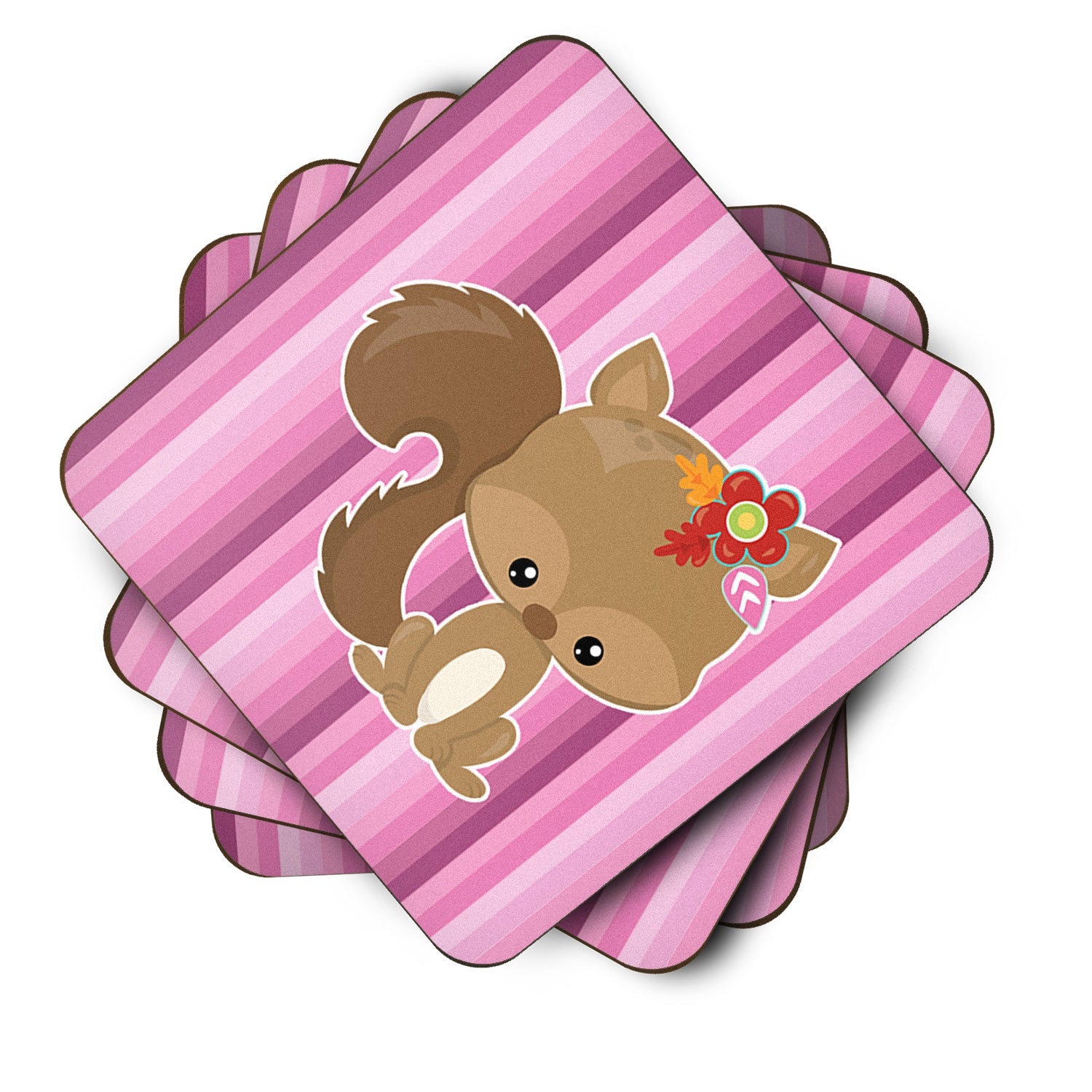 Decorate your space with our Squirrel artwork on a Coaster set. Presenting our Set of 4 Foam Coasters, a stylish and practical addition to your table setting. Each square coaster, measuring 3 1/2 inches by 3 1/2 inches, is perfectly sized to accommodate various drinkware, from coffee mugs to tumblers. These coasters stand out with their full-color artwork, permanently dyed onto the material for a vibrant and fade-resistant finish. They're not just functional, they're a fashionable statement, adding a touch of flair to any gathering or event. Our foam coasters serve a dual purpose - they protect your table from water stains and are perfect for both hot and cold drinks. The material used is similar to that of our high-quality mouse pads, ensuring durability and heat resistance. These coasters are easy to maintain - simply wash them in the top of your dishwasher and lay flat to dry. The design won't come off, ensuring they retain their vivid colors for years. Pair them with one of our insulated coolers or huggers for a cohesive, thoughtful gift set. Enhance your beverage experience with our Set of 4 Foam Coasters.