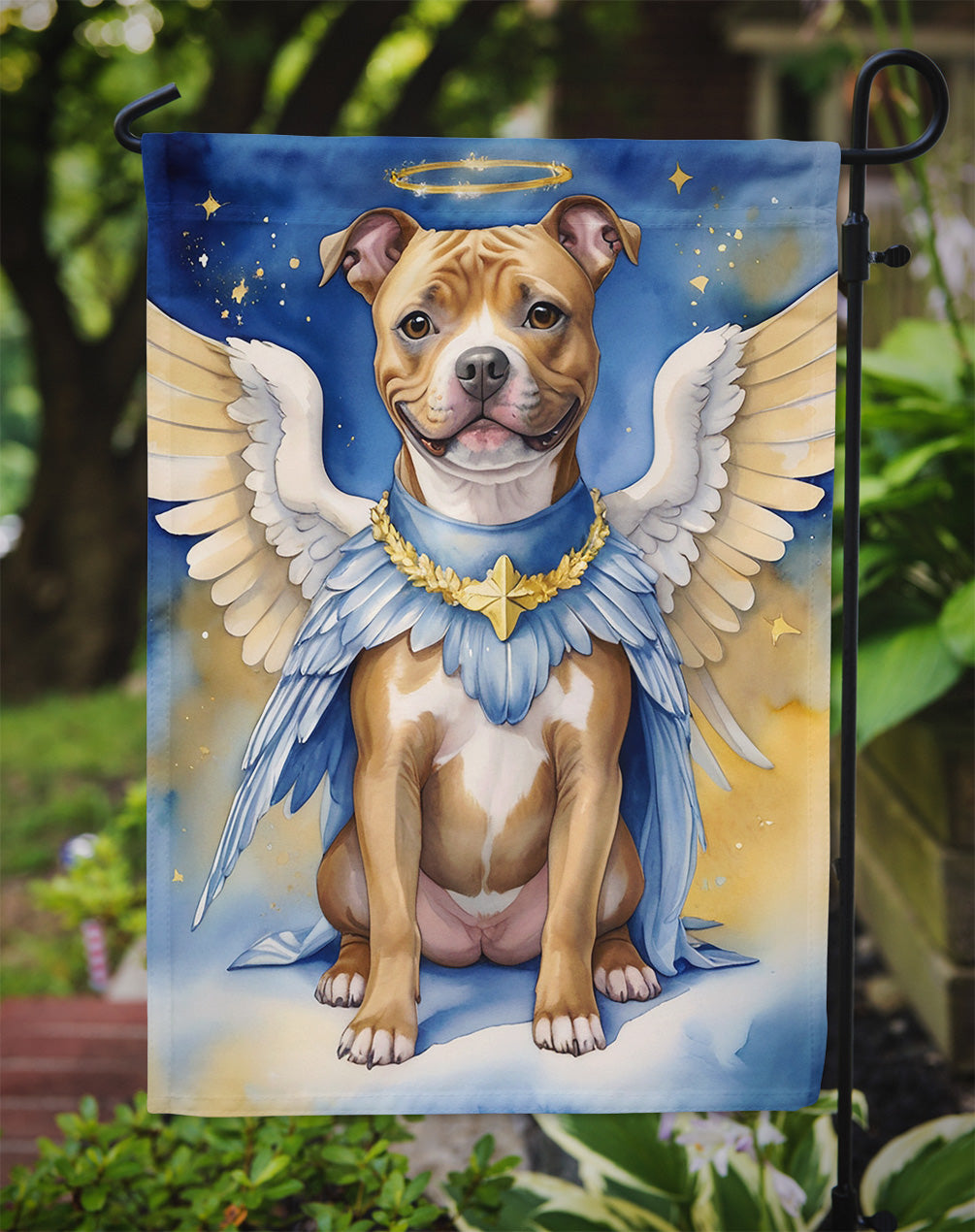 Decorate your space with our Christmas Staffordshire Bull Terrier artwork on a Garden Flag. Enhance the beauty of your garden, patio, or yard with Caroline's Treasures Decorative Garden Flag, proudly made in the USA. Crafted from two pieces of thick, double-sided polyester fabric, this 2-ply garden flag is designed to withstand various weather conditions, making it water-resistant and weatherproof. Featuring correctly readable words on both sides, this garden flag offers a delightful visual experience from any angle. With its heavier weight, it stands out among other garden flags, ensuring stability and durability even in wind, rain, and snow. Measuring approximately 11 1/4 inches by 15 1/2 inches, this flag allows you to personalize your outdoor decor. It comes with a 1 1/2-inch sleeve sewn in, allowing easy attachment to any standard garden flag stand or garden size porch hanger (sold separately). Make a statement in your outdoor space with Caroline's Treasures Decorative Garden Flag, a vibrant and high-quality flag that adds color and personality to your surroundings. Proudly made in the USA, it's a symbol of quality craftsmanship and attention to detail.