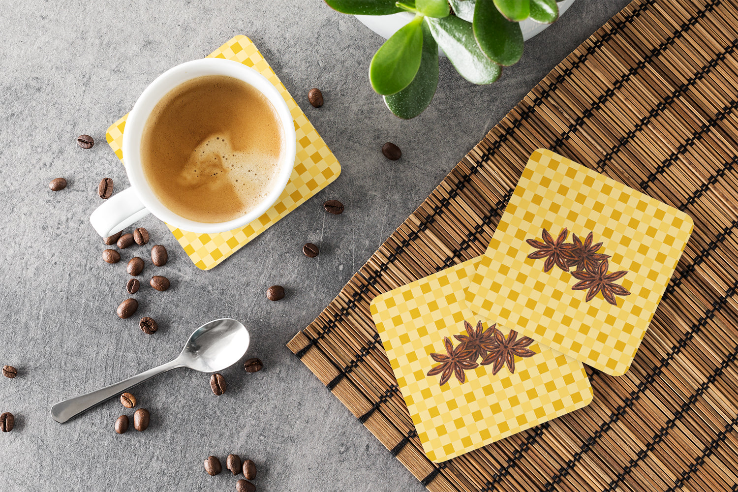 Star Anise on Basketweave Foam Coaster BB7213FC