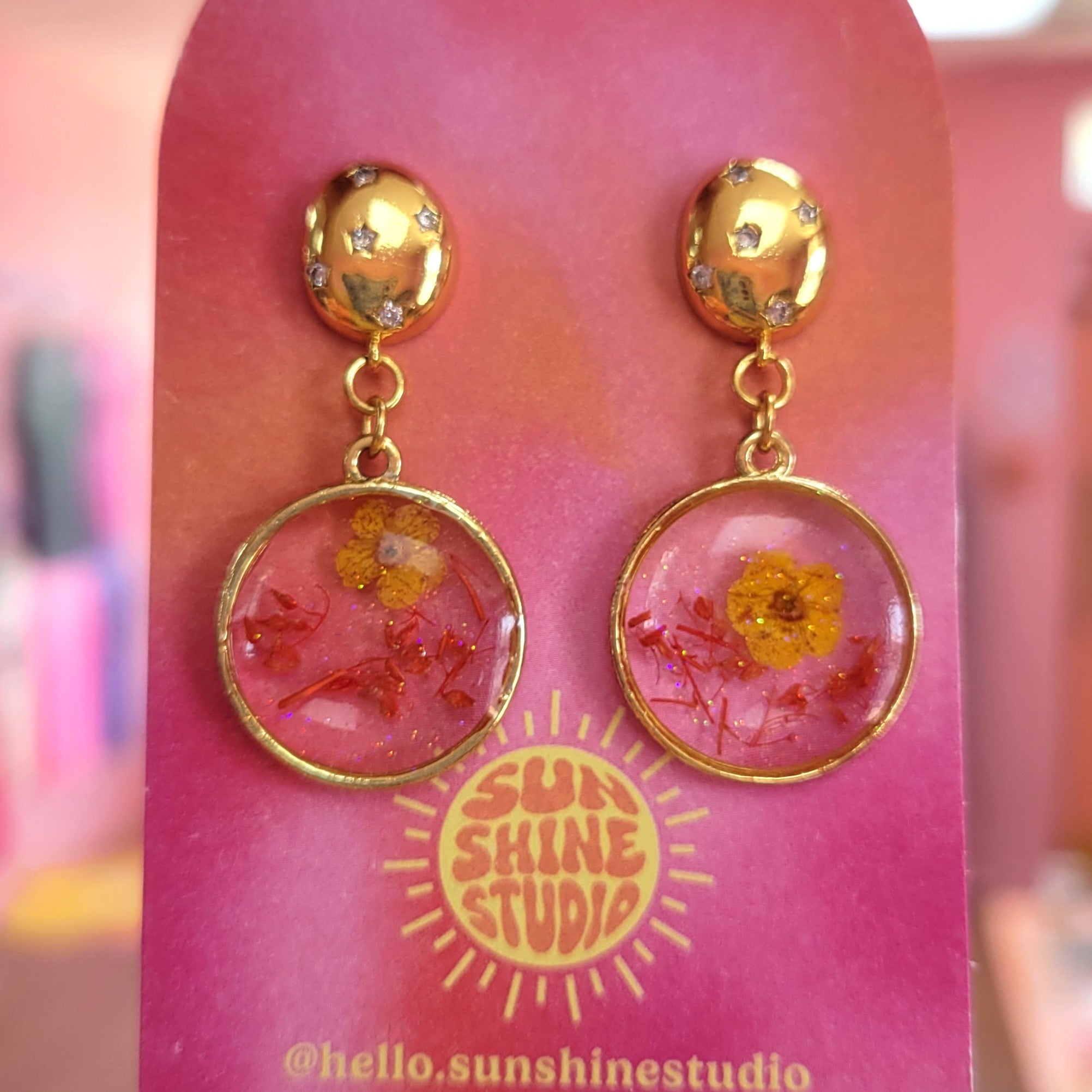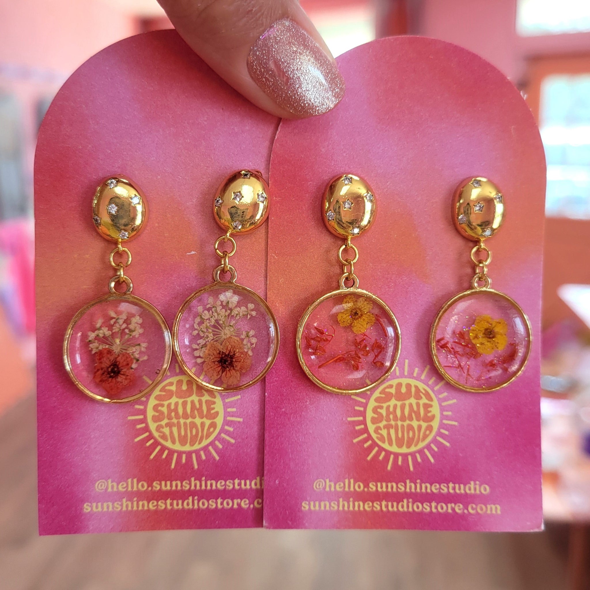 Experience the magic of stargazing with our Stargazing Fields - Floral Earrings. Immerse yourself in a field of fireflies and wildflowers with the perfect accessory for any nature lover.