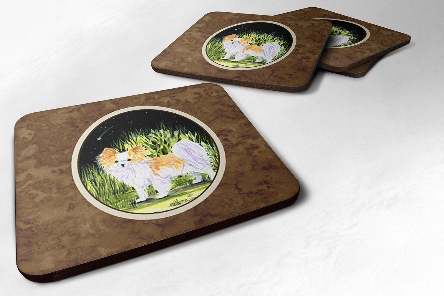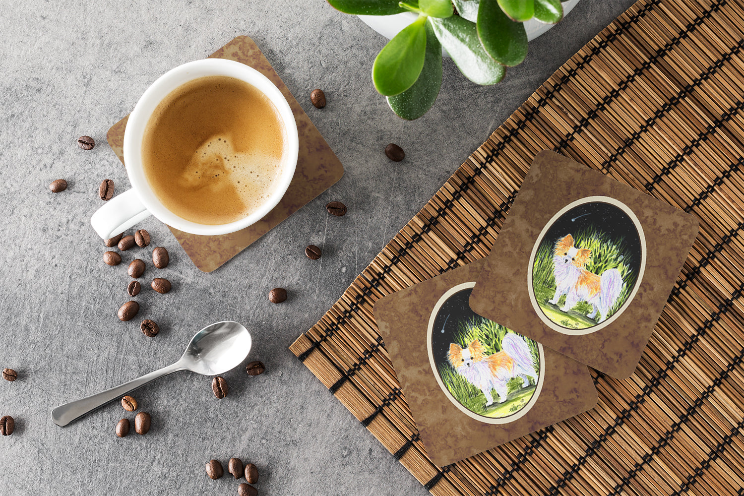 Decorate your space with our Chihuahua artwork on a Coaster set. Presenting our Set of 4 Foam Coasters, a stylish and practical addition to your table setting. Each square coaster, measuring 3 1/2 inches by 3 1/2 inches, is perfectly sized to accommodate various drinkware, from coffee mugs to tumblers. These coasters stand out with their full-color artwork, permanently dyed onto the material for a vibrant and fade-resistant finish. They're not just functional, they're a fashionable statement, adding a touch of flair to any gathering or event. Our foam coasters serve a dual purpose - they protect your table from water stains and are perfect for both hot and cold drinks. The material used is similar to that of our high-quality mouse pads, ensuring durability and heat resistance. These coasters are easy to maintain - simply wash them in the top of your dishwasher and lay flat to dry. The design won't come off, ensuring they retain their vivid colors for years. Pair them with one of our insulated coolers or huggers for a cohesive, thoughtful gift set. Enhance your beverage experience with our Set of 4 Foam Coasters.