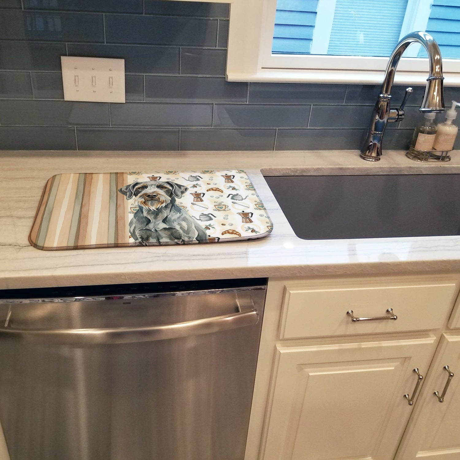 Shown here is the Steel Gray Wirehaired Pointing Griffon Coffee Bar Dish Drying Mat from Caroline's Treasures featuring artwork of a Wirehaired Pointing Griffon in a Everyday design. The detailed illustration and vibrant colors make it a standout accent that celebrates both seasonal style and love for the subject. This image features a cozy watercolor coffee-themed pattern with illustrated mugs, moka pots, kettles, croissants, coffee beans, and sugar cubes arranged in a repeating design. Soft neutral tones with warm browns, creams, and subtle sage accents create an inviting, café-inspired look that feels comforting and relaxed. Everyday décor celebrates personal style and the small moments that make a house feel like home. Thoughtful designs add warmth and personality that can be enjoyed year-round. Say goodbye to messy countertops and soggy dish towels with our innovative dish drying mat. Our high-quality dish drying pad is designed to keep your countertops dry while offering a stylish and efficient solution. Whether you're air drying dishes, glasses, stemware, silverware, pots, pans, bottles, or even fruits and vegetables, our dish mat is the perfect choice. The 14 inches x 21 inches size fits most counters and dish drying racks, and the non-slip design ensures stability. Made with water-absorbent polyester and a polyurethane foam insert, our dish drying mat is not only functional but also durable. It's machine washable and printed in the USA for long-lasting use. The beautiful artwork adds flair to your kitchen decor, making it a perfect housewarming gift or present for any occasion. Upgrade your kitchen experience with our absorbent and versatile dish drying mat. Perfect for: Kitchen counters and sinks, everyday dish drying and countertop protection, Dogs-themed homes, or year-round use for Wirehaired Pointing Griffon lovers. Wirehaired Pointing Griffons are versatile sporting dogs known for their intelligence and rugged coats. This breed is valued for its loyalty, endurance, and strong hunting instincts. Makes a heartfelt gift for: Wirehaired Pointing Griffon owners, Dogs lovers, Everyday gifts, pet parents, friends who adore their Wirehaired Pointing Griffon, or anyone celebrating Dogs.