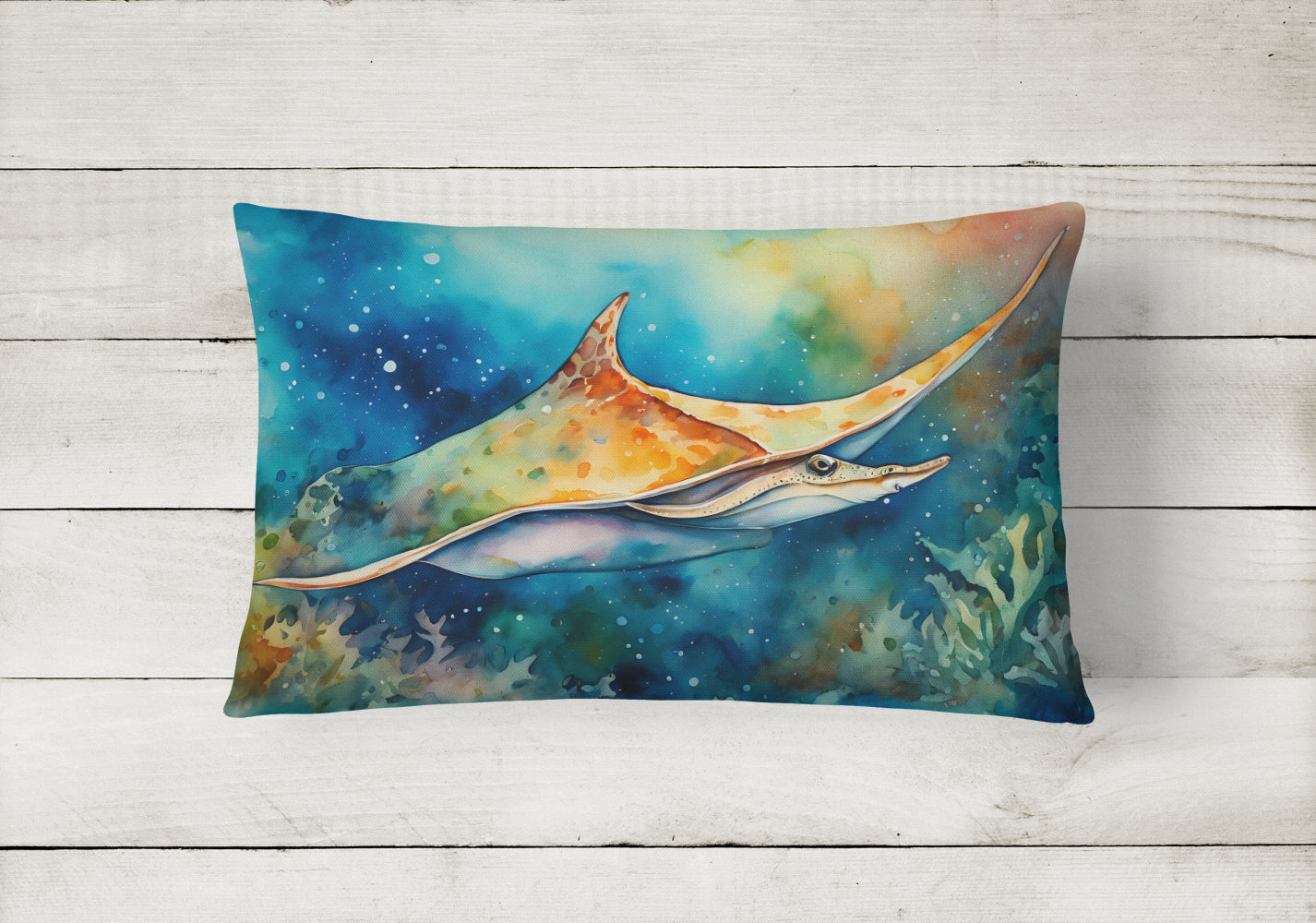Decorate your space with our Sting Ray artwork on a Pillow. Embrace the fusion of comfort and style with Caroline's Treasures Fabric Decorative Pillow. This 12x16 inch outdoor pillow is designed to complement your patio furniture, adding a splash of color and artistry to your outdoor setting. Constructed with a 100% Polyester Fabric pillow sham filled with a plush pillow form, this cushion is as comfortable as it is durable. Our outdoor pillow utilizes a novel fabric, meticulously woven for enhanced water resistance. This soft canvas material is equally suited for your indoor couch as well as outdoor settings such as the patio, porch, or veranda. To ensure enduring vibrance, we employ colorfast dyes resistant to fading even when subjected to weather elements. The making of this pillow involves the delicate sewing together of three fabric pieces to create a sham, into which a polyester insert is carefully placed. The result is an overstuffed pillow that tenaciously holds its shape. With both the sham and the pillow insert crafted in the United States, these handmade pillows are a testament to superior local craftsmanship. Note that as these pillows are handmade, sizes may slightly vary, enhancing their unique appeal. Enjoy comfort in style with Caroline's Treasures Fabric Decorative Pillow.