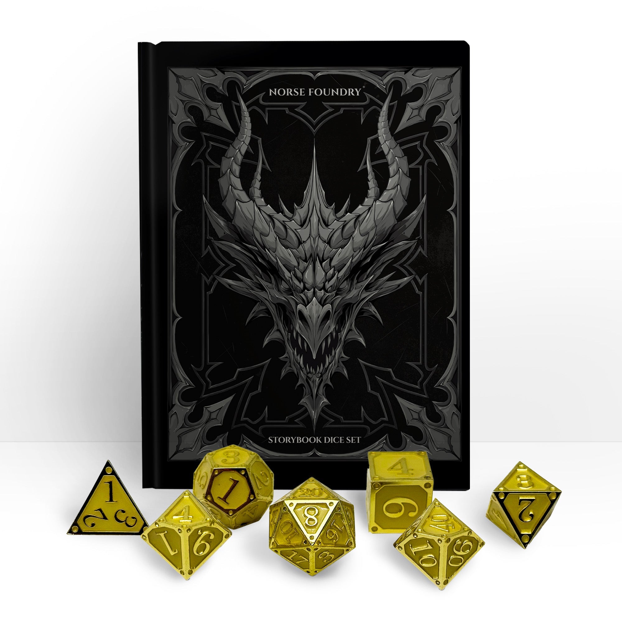 Illuminate your adventures with the brilliance of the Storybook - Crystals of Light dice set. Forged in shimmering gold and infused with radiant magic, these dice shine like treasures pulled from celestial vaults. Their golden enamel gleams in the light, and when darkness falls, they awaken with a glow that guides heroes through even the shadowiest realms. Perfect for seekers of hope, destiny, and triumph, this set is a beacon at any gaming table.