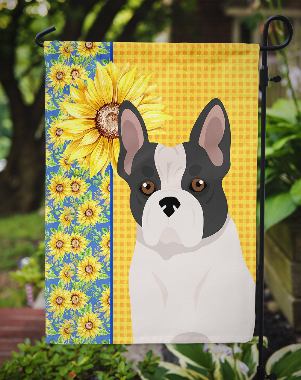 Summer Sunflowers Black and White French Bulldog Garden Flag – Decorative Outdoor Yard Flag