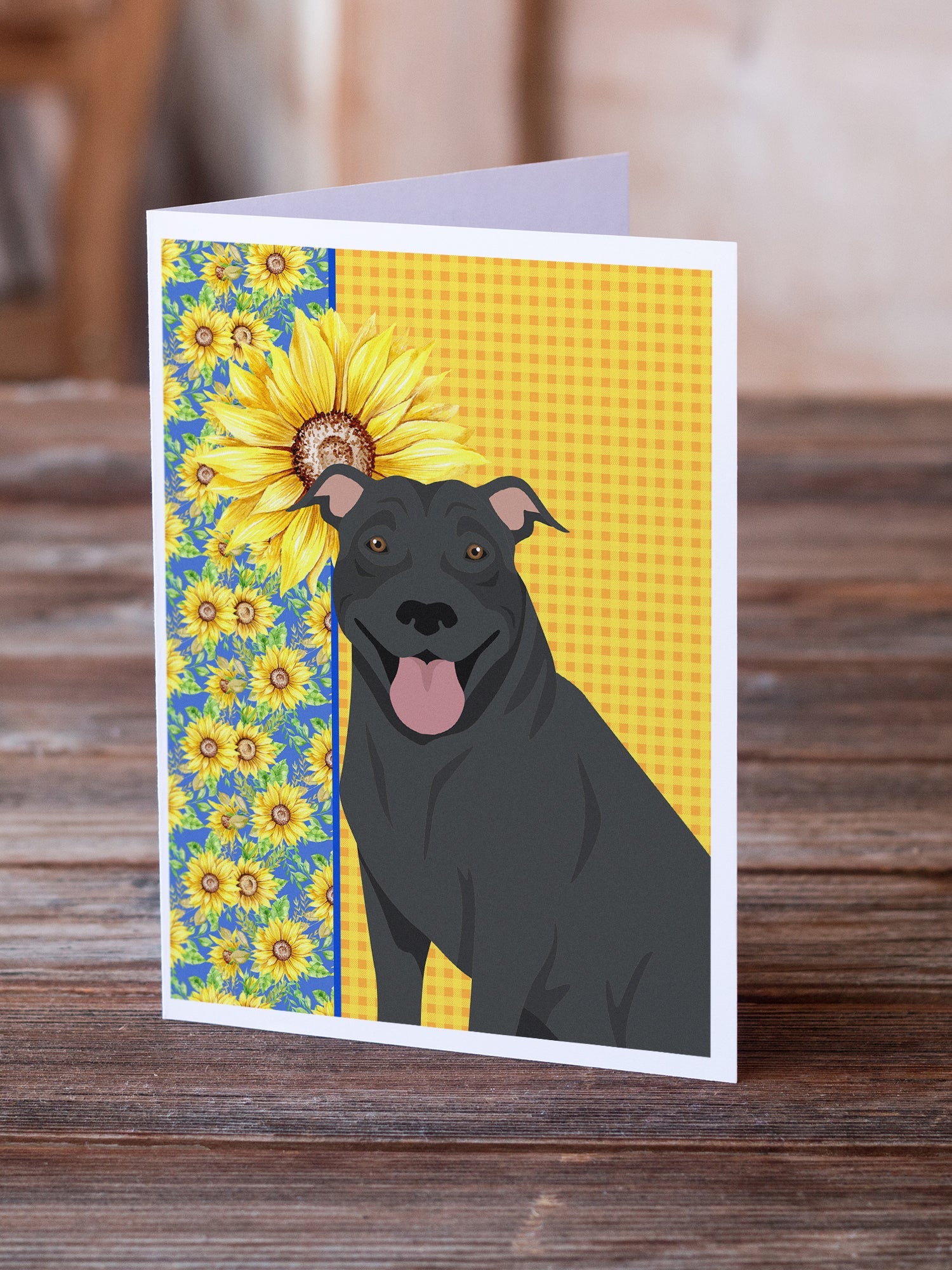Summer Sunflowers Black Pit Bull Terrier Greeting Cards -  Blank Note Cards – 8-Pack of Artist-Designed Cards with Envelopes