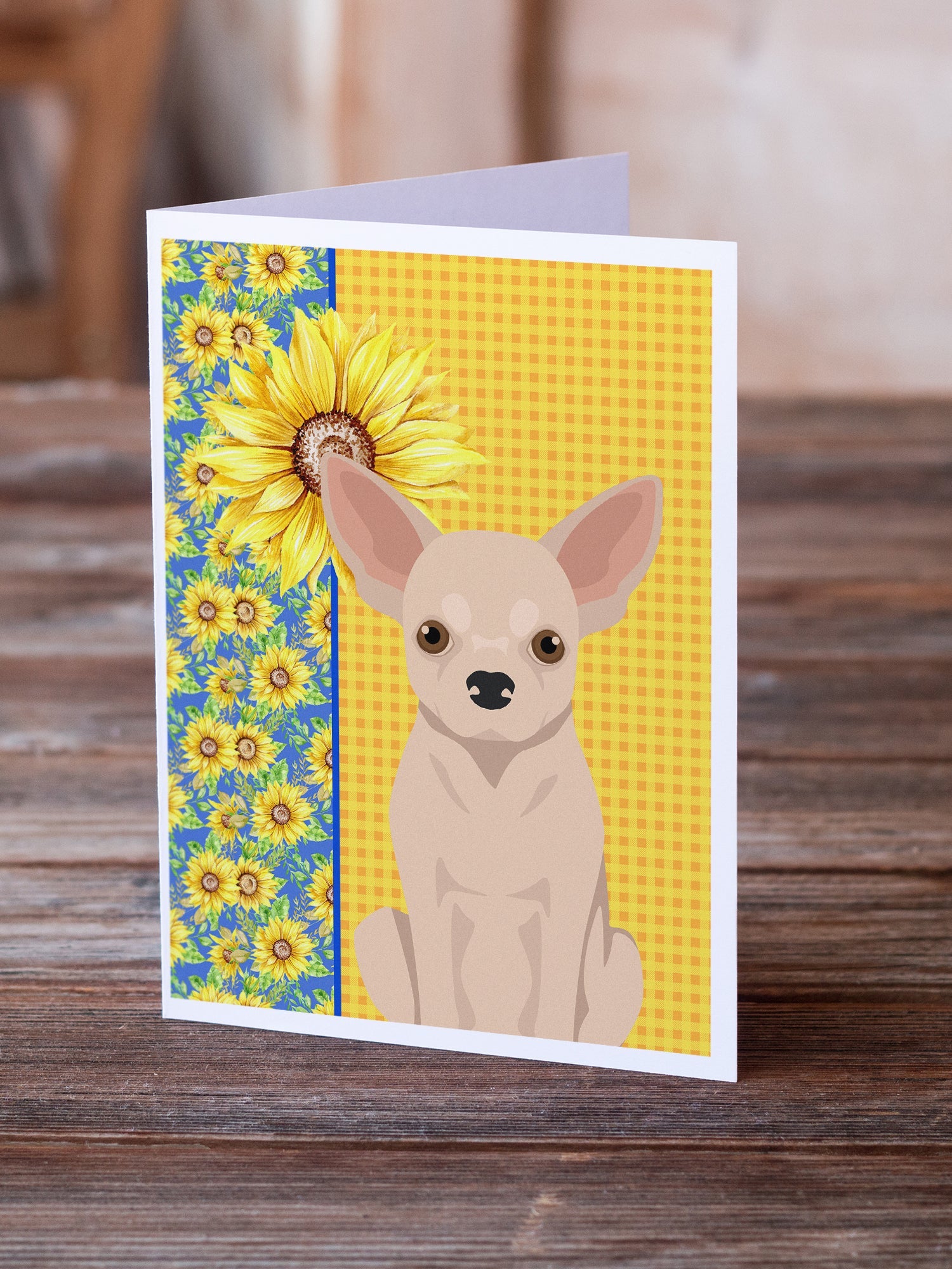 Summer Sunflowers Fawn Chihuahua Greeting Cards -  Blank Note Cards – 8-Pack of Artist-Designed Cards with Envelopes