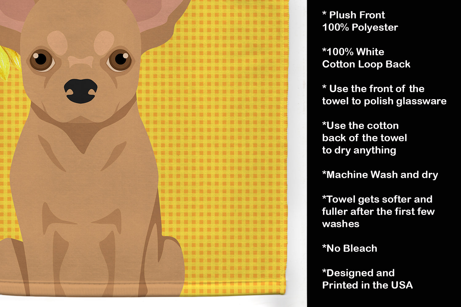 Decorate your space with our Chihuahua artwork on a Kitchen Towel. Bring a bit of Summer into your home with a Summer Kitchen Towel. Experience the perfect blend of aesthetic appeal and functional excellence with our Plush Velour Kitchen Towels. These are not your ordinary decorative kitchen towels that gather dust. Instead, they are designed to be as practical as they are stylish. The front layer of our towel is constructed from a minky plush polyester, known for its durability and color retention. Unlike conventional kitchen towels, the artwork on our towels is dyed directly into the fabric, ensuring vibrant colors that last. Polish your glassware to a brilliant sparkle using the plush front side of the towel. Flip to the back, crafted from 100% cotton terry loop, to exploit its exceptional absorbency for drying dishes or wiping down counters. Our kitchen towels redefine the concept of functional art, offering lasting quality that maintains the towel's shape over time. Measuring 15 inches by 25 inches and weighing 2.3 lbs per dozen, these towels deliver an overwhelming sensory experience with their soft, plush, and smooth texture. The edges are meticulously finished with binding, enhancing their durability and visual appeal. For your convenience, these towels are machine washable and can be dried on low heat. After the first wash, the top fabric becomes even softer and fluffier, eliminating the need for ironing. Treat your kitchen to the luxury and functionality it deserves with our plush velour kitchen towels.