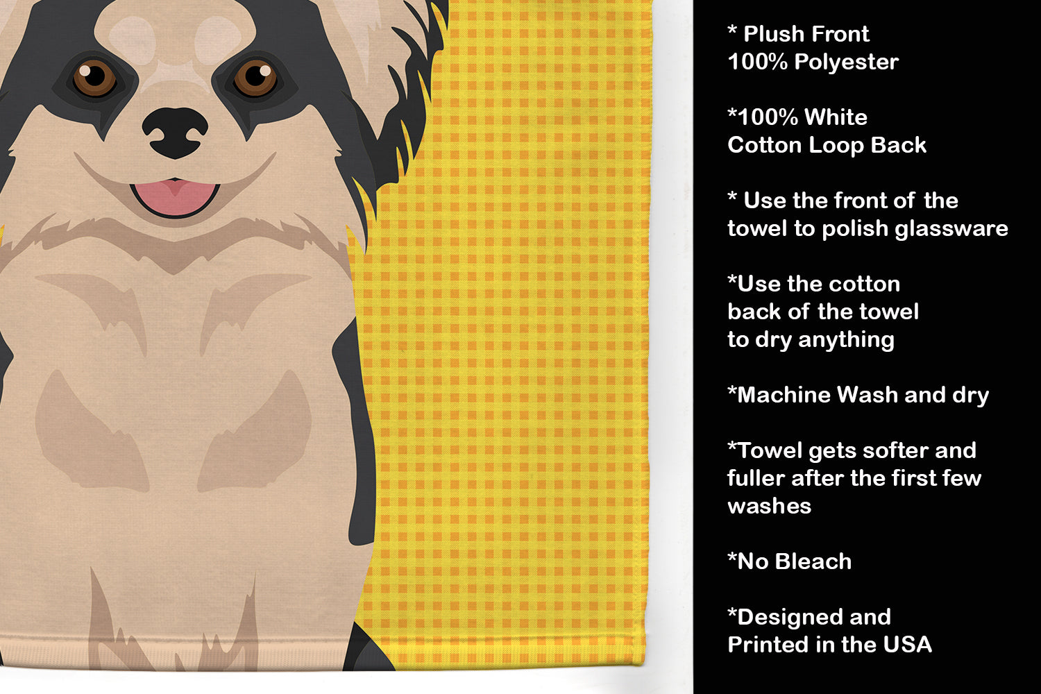 Decorate your space with our Chihuahua artwork on a Kitchen Towel. Bring a bit of Summer into your home with a Summer Kitchen Towel. Experience the perfect blend of aesthetic appeal and functional excellence with our Plush Velour Kitchen Towels. These are not your ordinary decorative kitchen towels that gather dust. Instead, they are designed to be as practical as they are stylish. The front layer of our towel is constructed from a minky plush polyester, known for its durability and color retention. Unlike conventional kitchen towels, the artwork on our towels is dyed directly into the fabric, ensuring vibrant colors that last. Polish your glassware to a brilliant sparkle using the plush front side of the towel. Flip to the back, crafted from 100% cotton terry loop, to exploit its exceptional absorbency for drying dishes or wiping down counters. Our kitchen towels redefine the concept of functional art, offering lasting quality that maintains the towel's shape over time. Measuring 15 inches by 25 inches and weighing 2.3 lbs per dozen, these towels deliver an overwhelming sensory experience with their soft, plush, and smooth texture. The edges are meticulously finished with binding, enhancing their durability and visual appeal. For your convenience, these towels are machine washable and can be dried on low heat. After the first wash, the top fabric becomes even softer and fluffier, eliminating the need for ironing. Treat your kitchen to the luxury and functionality it deserves with our plush velour kitchen towels.