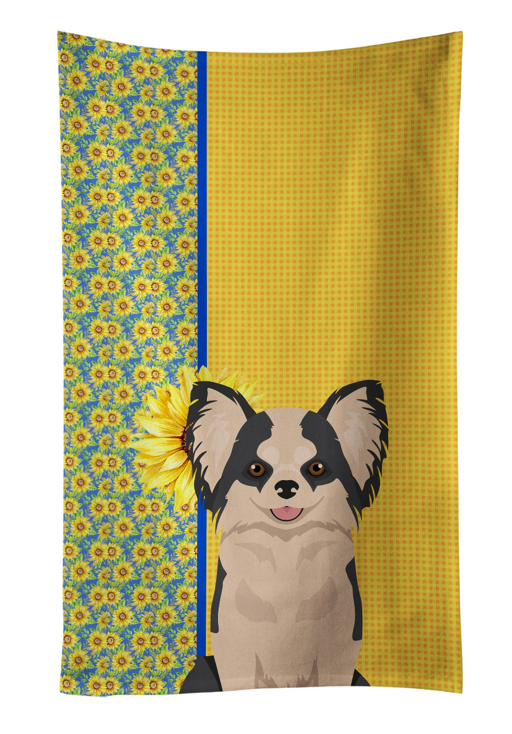 Summer Sunflowers Longhaired Black and White #2 Chihuahua Kitchen Towel