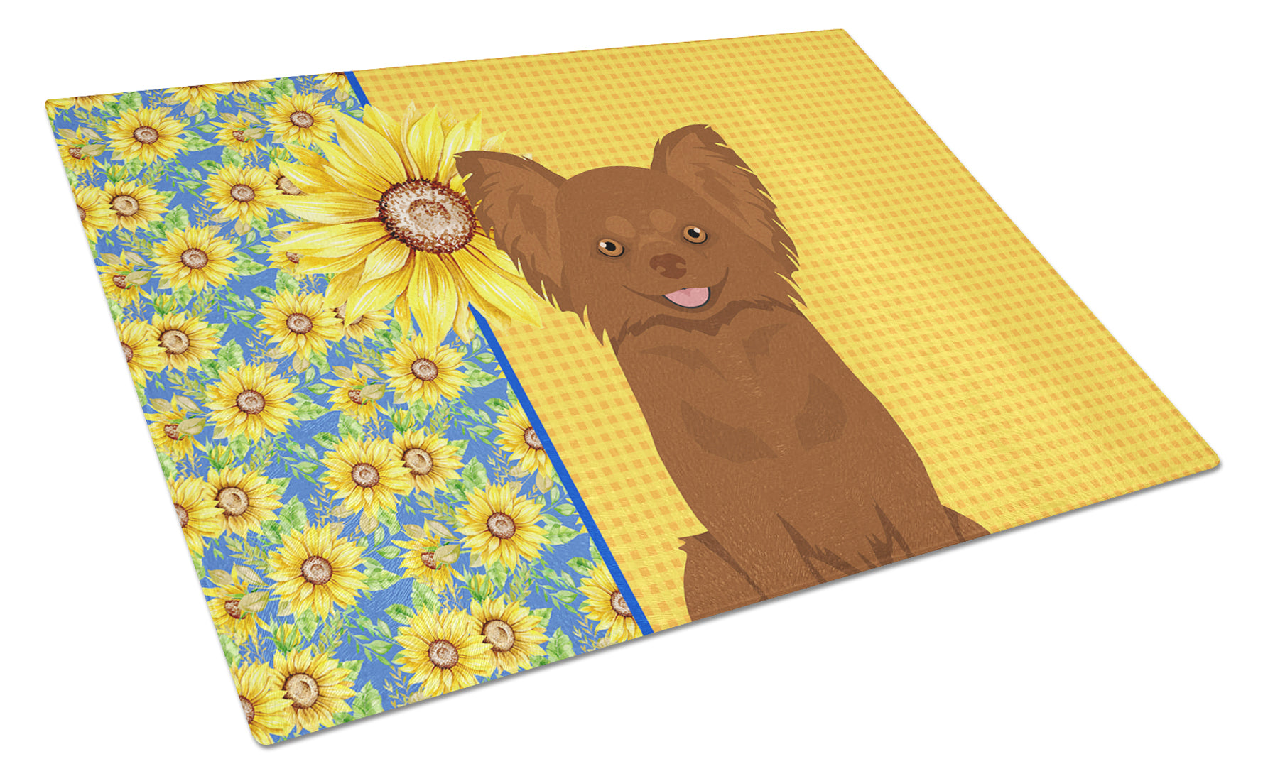Decorate your space with our Chihuahua artwork on a Cutting Board. Bring a bit of Summer into your home with a Summer Cutting Board. Introduce your kitchen to the vibrant, large Decorative Glass Cutting Board from Caroline's Treasures. Crafted from resilient tempered glass, this board is not only a utilitarian necessity but also a colorful art piece. With its generous dimensions of 15 inches in height and 12 inches in length, it offers ample space for all your cutting needs. Every piece showcases captivating artwork from distinguished artists, bringing an aesthetic edge to your kitchen. Beyond its attractive design, this cutting board ensures your countertop stays pristine and unscathed, owing to its heat-resistant properties. Engineered with user convenience in mind, it features non-skid feet for stability, and rounded corners for additional safety. Its robust construction renders it virtually unbreakable, guaranteeing longevity. The board comes with protective feet bumpers, maintaining its position during use. This product is recommended to be hand washed only. Proudly printed and assembled in the United States, this cutting board exemplifies superior craftsmanship. With Caroline's Treasures' Decorative Glass Cutting Board, you're investing in a blend of functionality and artistic flair.