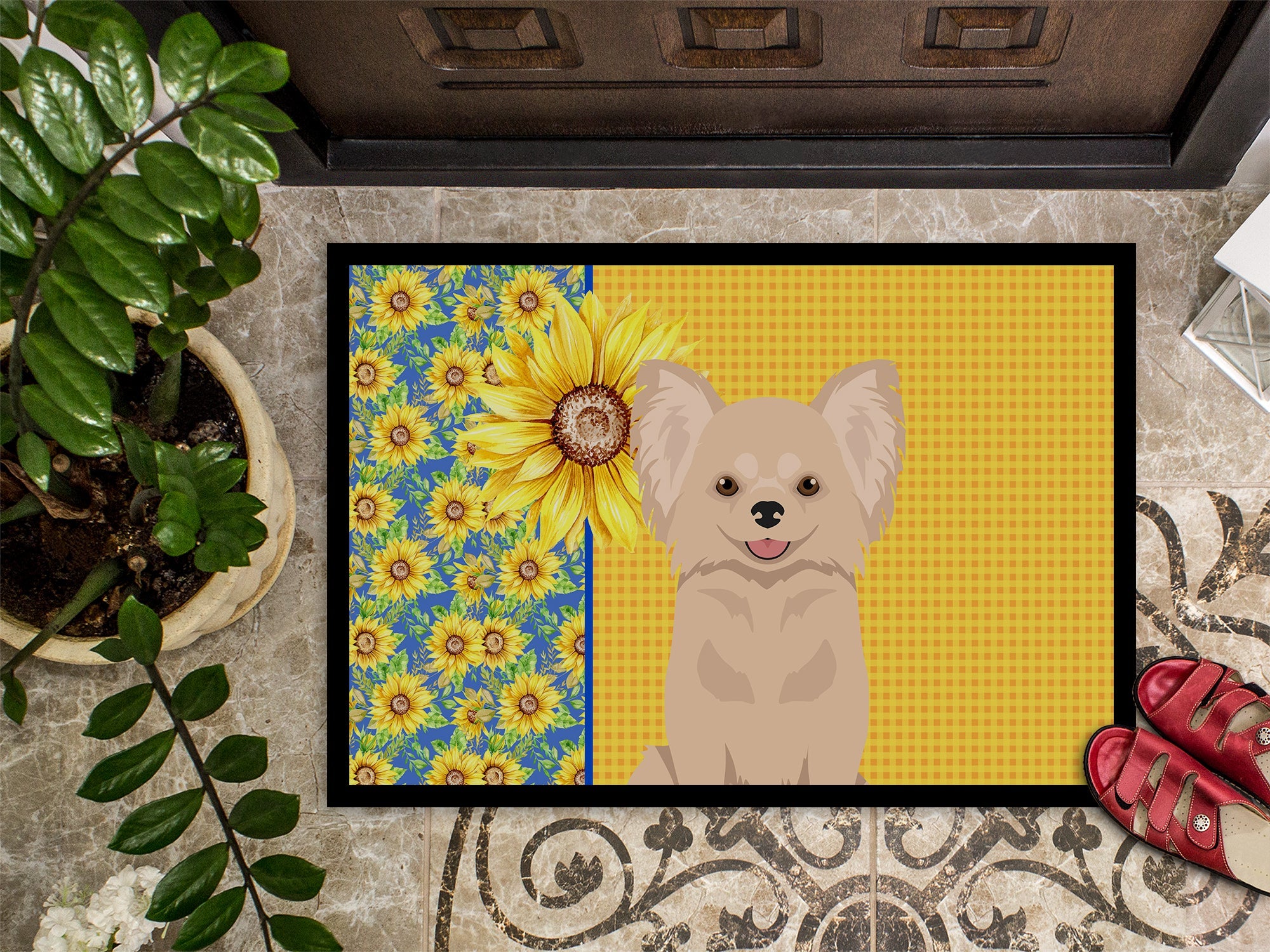 Summer Sunflowers Longhaired Cream Chihuahua Doormat - 24x36 Decorative Floor Mat – Indoor/Outdoor Rug with Artistic Flair