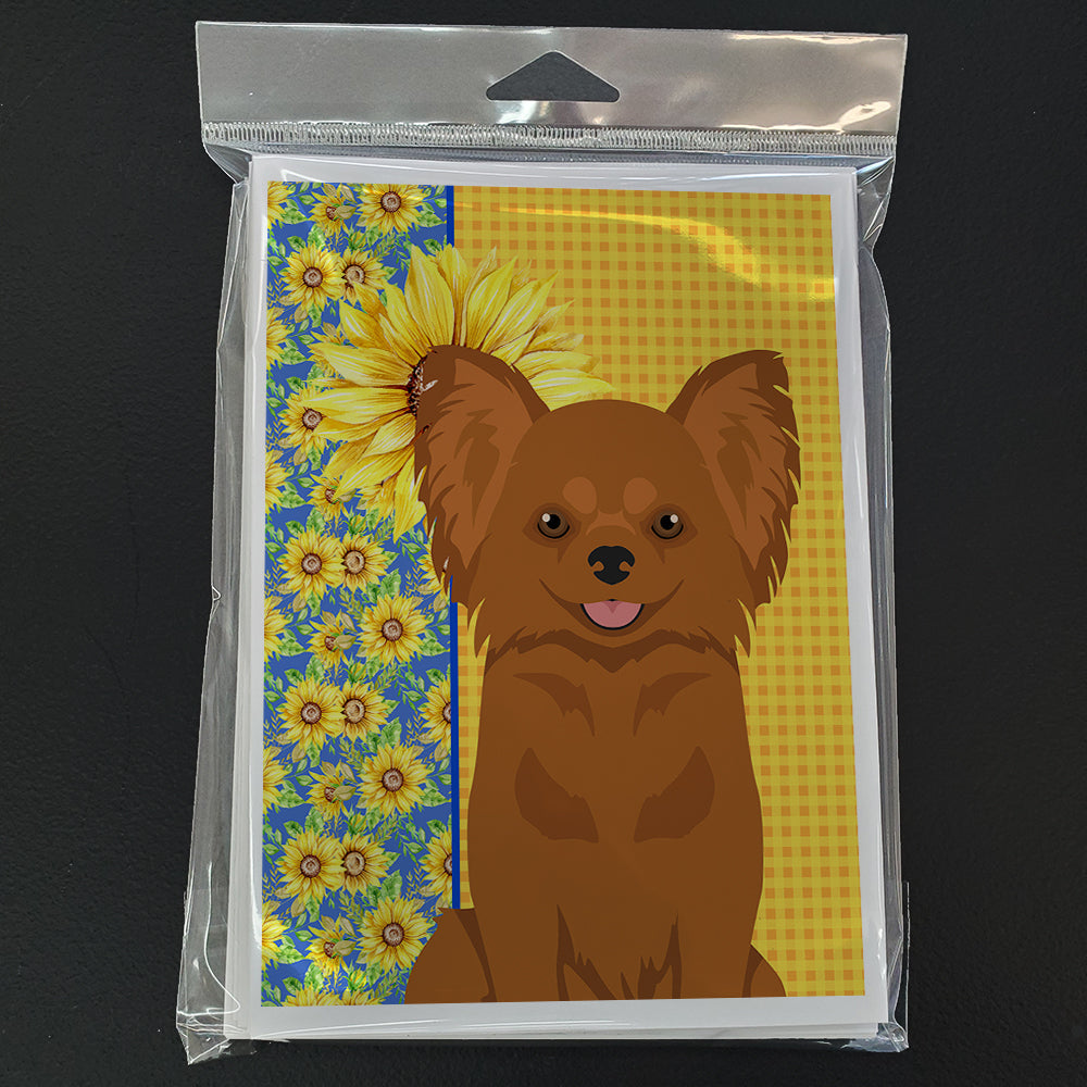 Summer Sunflowers Longhaired Red Chihuahua Greeting Cards - Blank Note Cards – 8-Pack of Artist-Designed Cards with Envelopes
