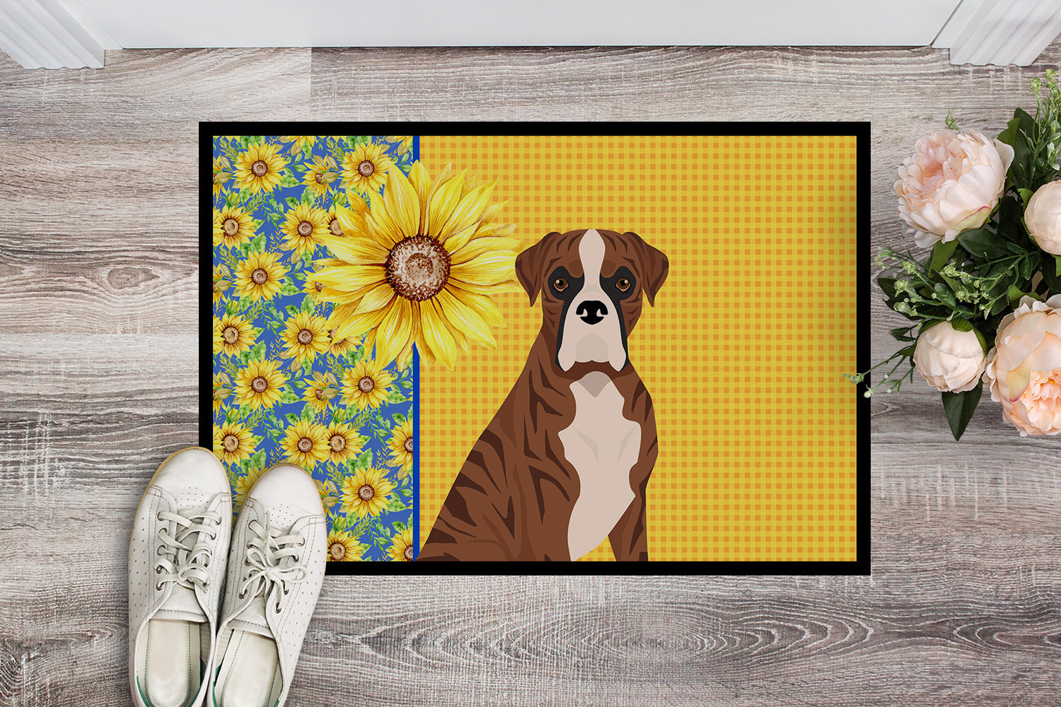 Summer Sunflowers Natural Eared Red Brindle Boxer Doormat - 24x36 Decorative Floor Mat – Indoor/Outdoor Rug with Artistic Flair