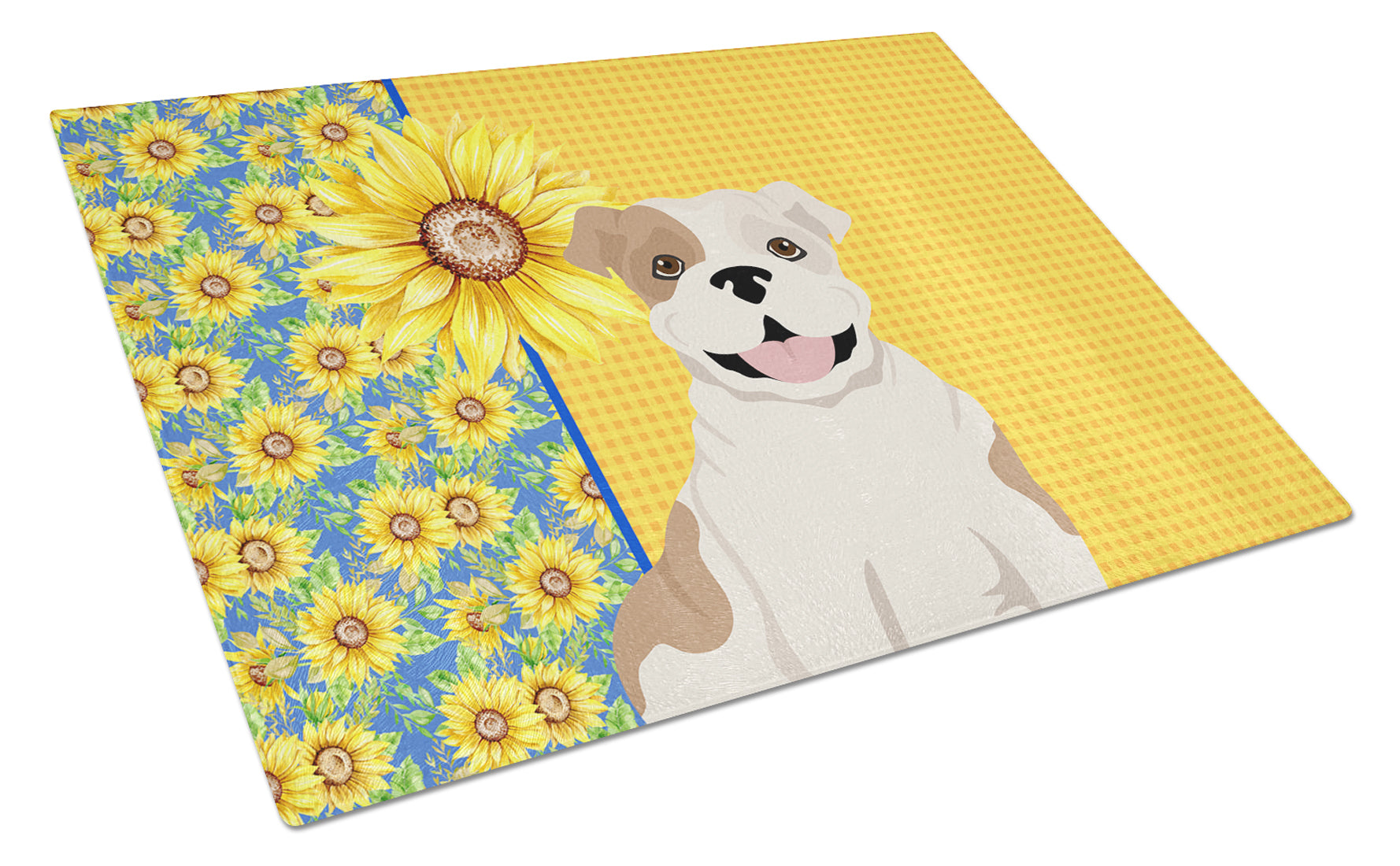 Decorate your space with our English Bulldog artwork on a Cutting Board. Bring a bit of Summer into your home with a Summer Cutting Board. Introduce your kitchen to the vibrant, large Decorative Glass Cutting Board from Caroline's Treasures. Crafted from resilient tempered glass, this board is not only a utilitarian necessity but also a colorful art piece. With its generous dimensions of 15 inches in height and 12 inches in length, it offers ample space for all your cutting needs. Every piece showcases captivating artwork from distinguished artists, bringing an aesthetic edge to your kitchen. Beyond its attractive design, this cutting board ensures your countertop stays pristine and unscathed, owing to its heat-resistant properties. Engineered with user convenience in mind, it features non-skid feet for stability, and rounded corners for additional safety. Its robust construction renders it virtually unbreakable, guaranteeing longevity. The board comes with protective feet bumpers, maintaining its position during use. This product is recommended to be hand washed only. Proudly printed and assembled in the United States, this cutting board exemplifies superior craftsmanship. With Caroline's Treasures' Decorative Glass Cutting Board, you're investing in a blend of functionality and artistic flair.