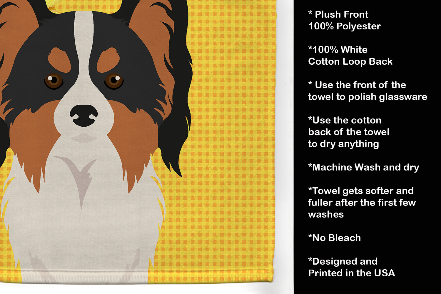 Decorate your space with our Papillon artwork on a Kitchen Towel. Bring a bit of Summer into your home with a Summer Kitchen Towel. Experience the perfect blend of aesthetic appeal and functional excellence with our Plush Velour Kitchen Towels. These are not your ordinary decorative kitchen towels that gather dust. Instead, they are designed to be as practical as they are stylish. The front layer of our towel is constructed from a minky plush polyester, known for its durability and color retention. Unlike conventional kitchen towels, the artwork on our towels is dyed directly into the fabric, ensuring vibrant colors that last. Polish your glassware to a brilliant sparkle using the plush front side of the towel. Flip to the back, crafted from 100% cotton terry loop, to exploit its exceptional absorbency for drying dishes or wiping down counters. Our kitchen towels redefine the concept of functional art, offering lasting quality that maintains the towel's shape over time. Measuring 15 inches by 25 inches and weighing 2.3 lbs per dozen, these towels deliver an overwhelming sensory experience with their soft, plush, and smooth texture. The edges are meticulously finished with binding, enhancing their durability and visual appeal. For your convenience, these towels are machine washable and can be dried on low heat. After the first wash, the top fabric becomes even softer and fluffier, eliminating the need for ironing. Treat your kitchen to the luxury and functionality it deserves with our plush velour kitchen towels.