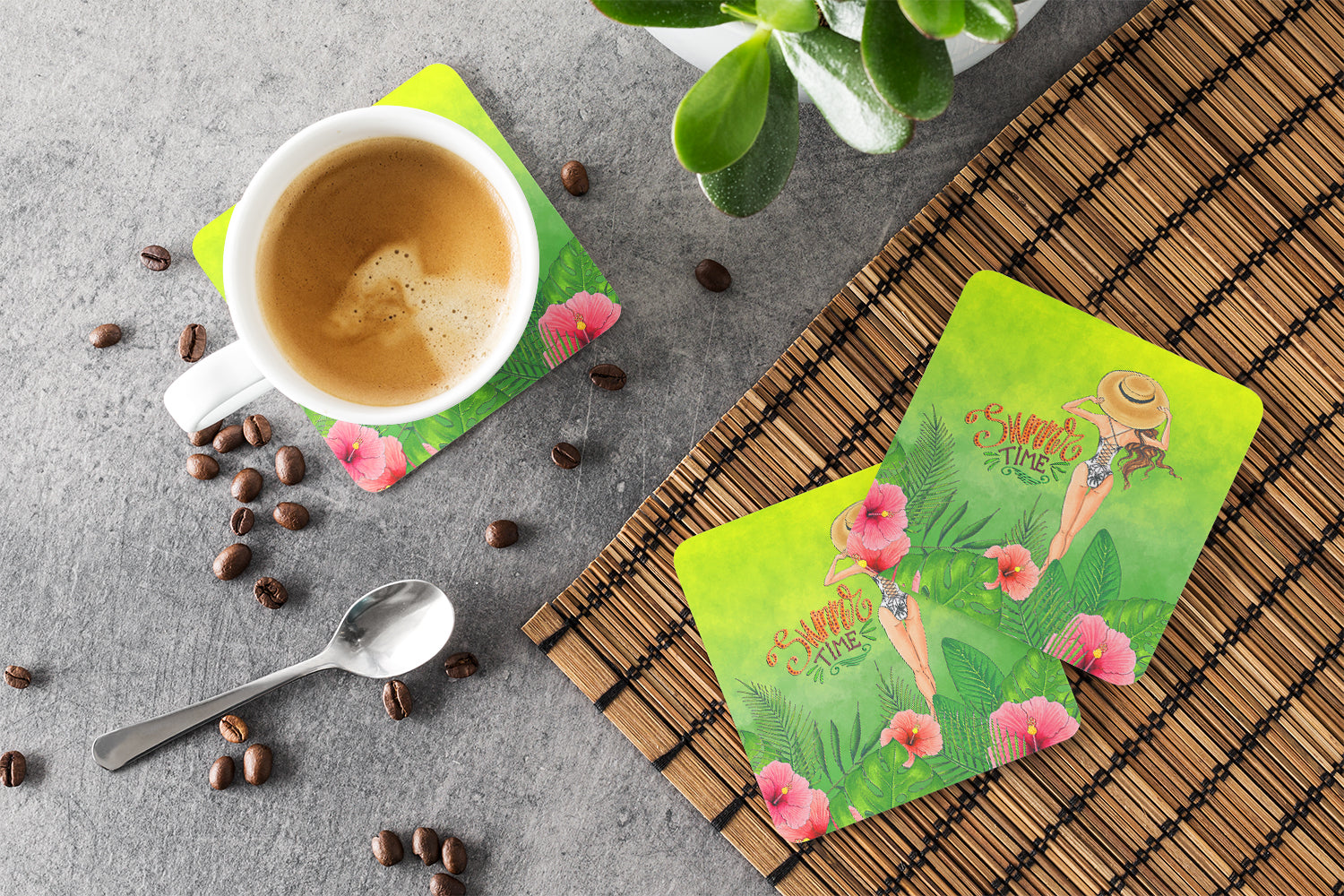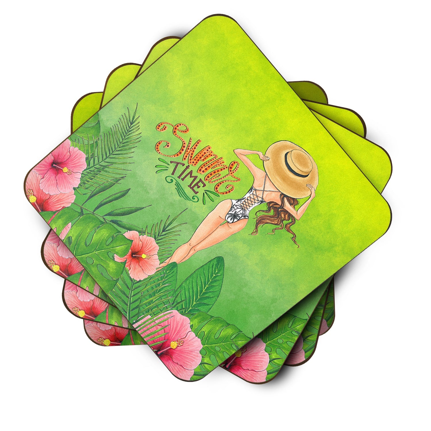 Bring a bit of Summer into your home with a Summer Coaster set. Presenting our Set of 4 Foam Coasters, a stylish and practical addition to your table setting. Each square coaster, measuring 3 1/2 inches by 3 1/2 inches, is perfectly sized to accommodate various drinkware, from coffee mugs to tumblers. These coasters stand out with their full-color artwork, permanently dyed onto the material for a vibrant and fade-resistant finish. They're not just functional, they're a fashionable statement, adding a touch of flair to any gathering or event. Our foam coasters serve a dual purpose - they protect your table from water stains and are perfect for both hot and cold drinks. The material used is similar to that of our high-quality mouse pads, ensuring durability and heat resistance. These coasters are easy to maintain - simply wash them in the top of your dishwasher and lay flat to dry. The design won't come off, ensuring they retain their vivid colors for years. Pair them with one of our insulated coolers or huggers for a cohesive, thoughtful gift set. Enhance your beverage experience with our Set of 4 Foam Coasters.