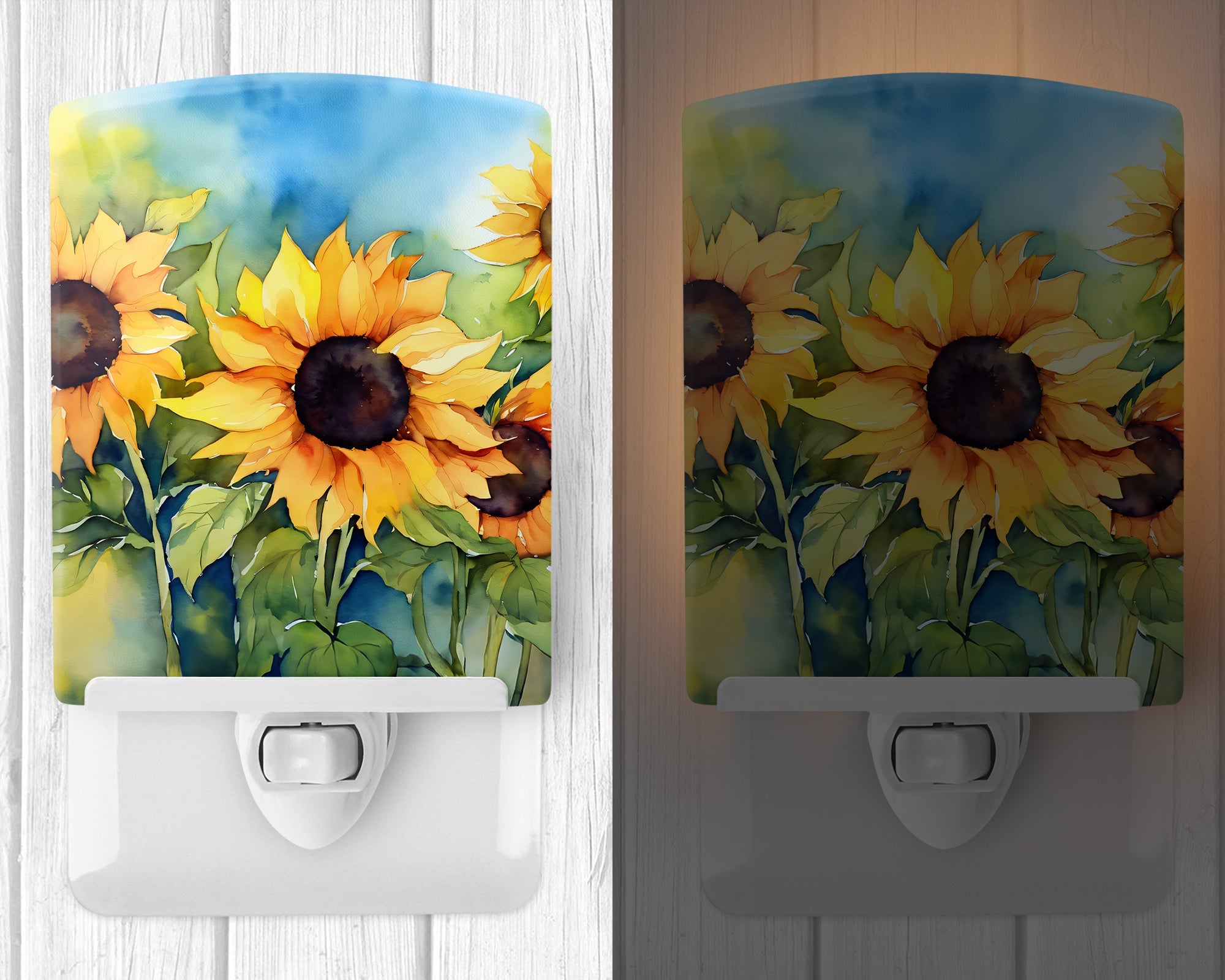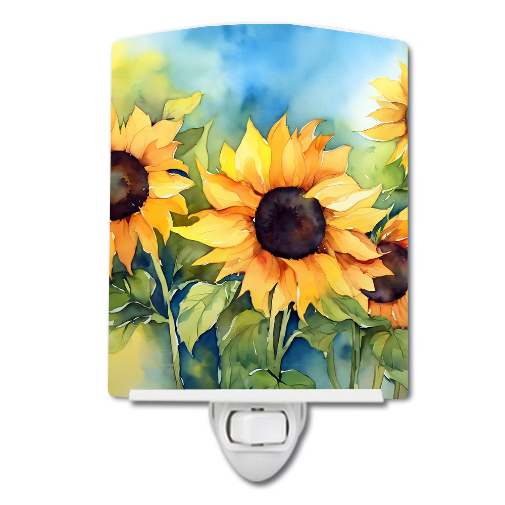 Sunflowers in Watercolor Ceramic Night Light