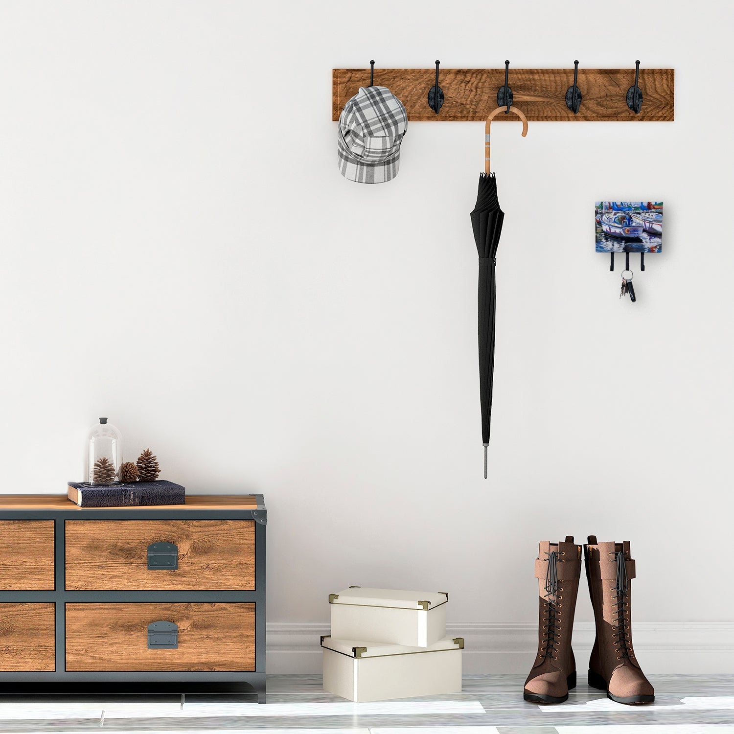 Transform your home or office's organization with the Caroline's Treasures Triple Leash or Key Holder. Offering versatility and style, this triple hook holder is perfect for holding keys, leashes, or just about any other small items you need to keep at hand. Crafted with a hardboard tile mounted to a metal rectangle, this holder's structure speaks of durability and reliability. Each hook hangs down about 2.5 inches from the base, providing ample space for hanging your essentials. Despite its robustness, this triple hook holder remains simple to install. It comes with a 1.5-inch long hanger attached to the metal plate, ensuring easy installation with a screw or paneling nail. This holder, measuring 6 x 2 x 9 inches and weighing only 1 lb, is a compact and lightweight solution to your storage needs. Ideal for home or office use, the Caroline's Treasures Triple Leash or Key Holder enhances organization while adding a touch of sophistication to your space.