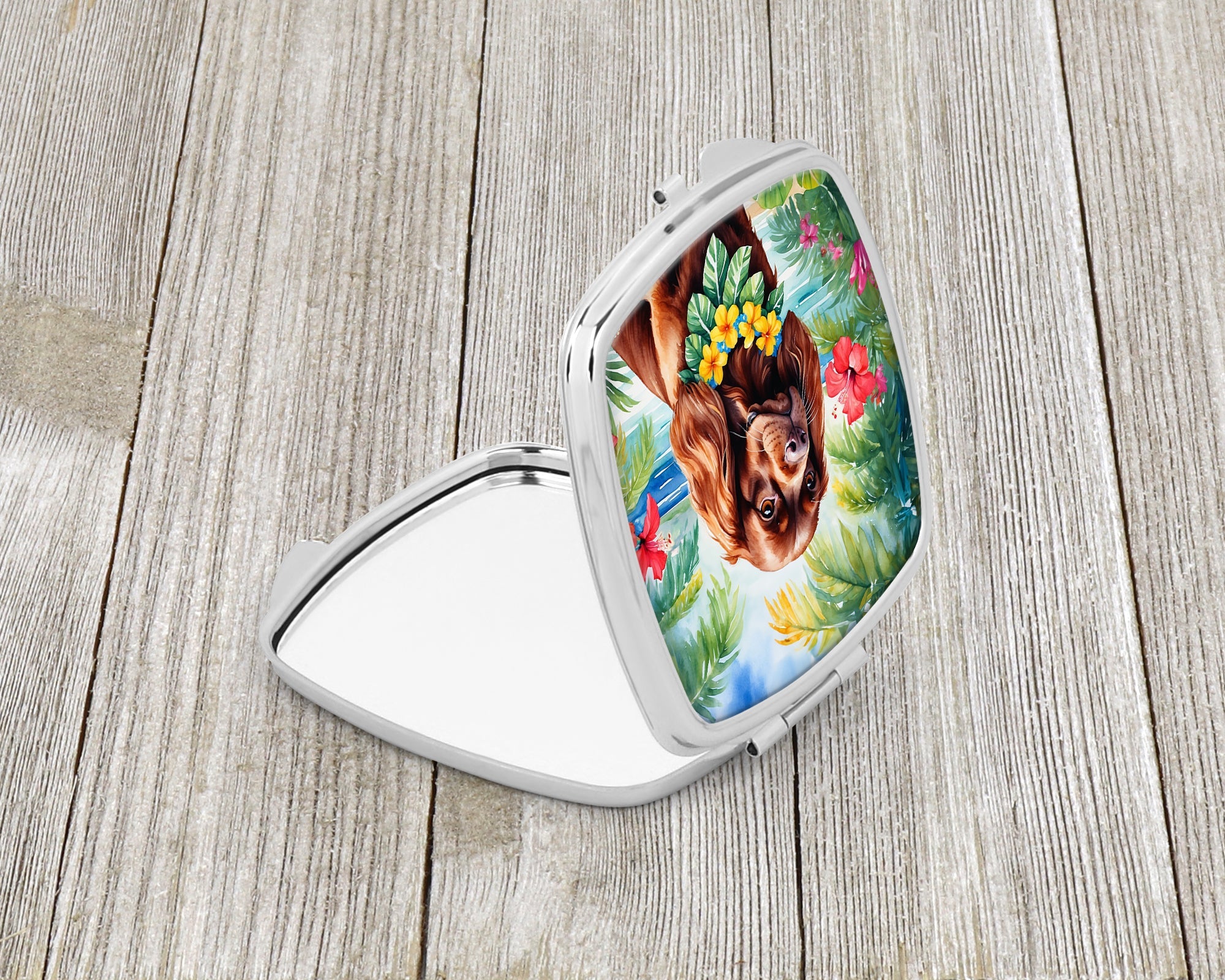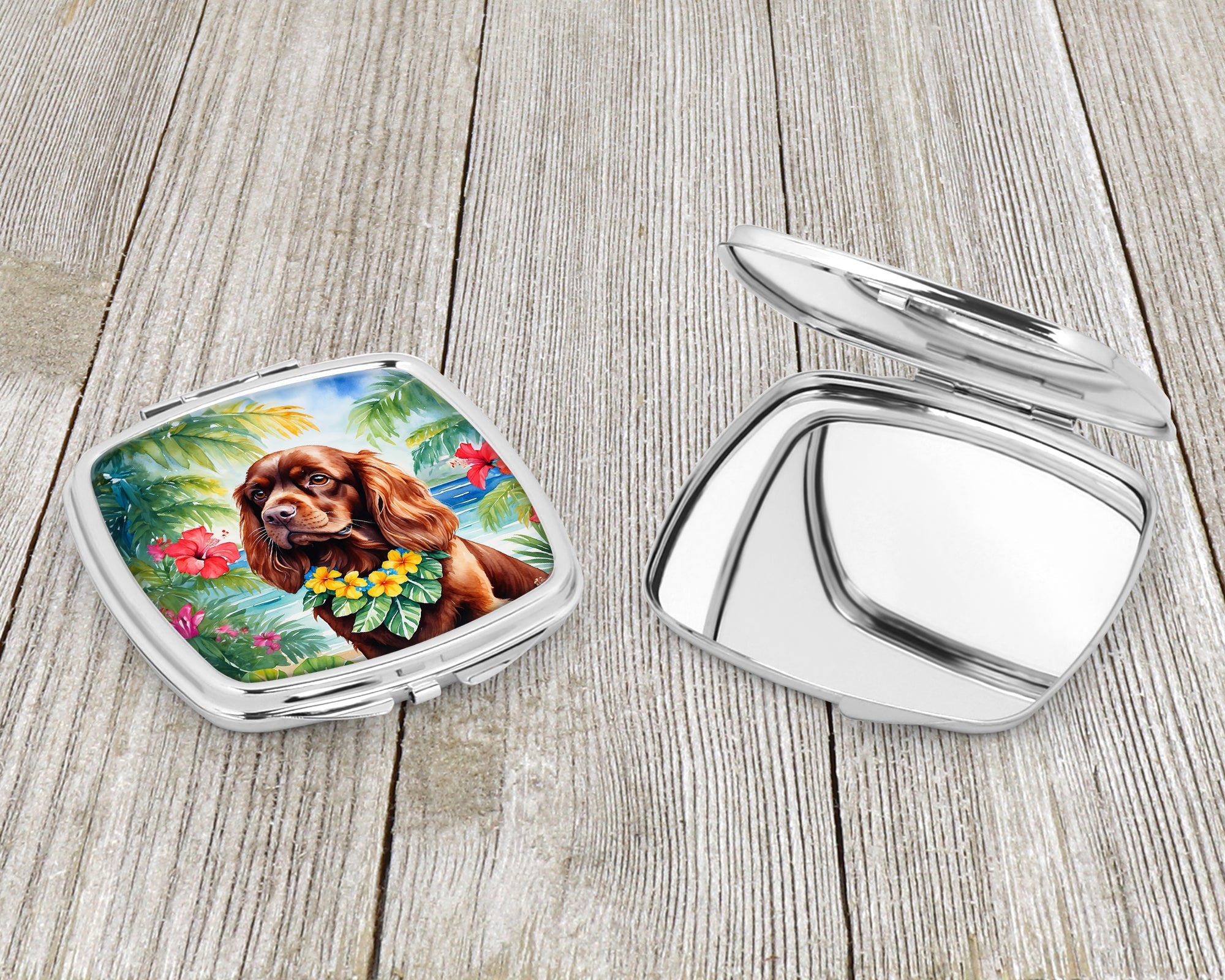 Decorate your space with our Sussex Spaniel artwork on a Compact Mirror. Bring a bit of Summer into your home with a Summer Compact Mirror. Introducing our Square Compact Mirror, a blend of elegance, functionality, and compactness, perfect for on-the-go touch-ups. This Silvertone metal mirror, with dimensions of 2.75 inches x 3 inches x .3 inches, fits effortlessly into your purse, handbag, or pocket, ensuring that you can check your appearance anytime, anywhere. Our compact mirror stands out with its eye-catching artwork on the front, adding a dash of style to this practical accessory. It is more than just a mirror; it's a statement piece that reflects your personality and aesthetic. When opened, this compact reveals two mirrors inside, doubling your perspective for precise touch-ups. The Silvertone metal construction ensures durability while maintaining a lightweight feel, making it an ideal everyday carry item. Whether you're rushing to a meeting, prepping for a dinner date, or just need a quick check on your look, our Square Compact Mirror is your reliable companion. Experience the perfect blend of style and practicality with this must-have accessory.