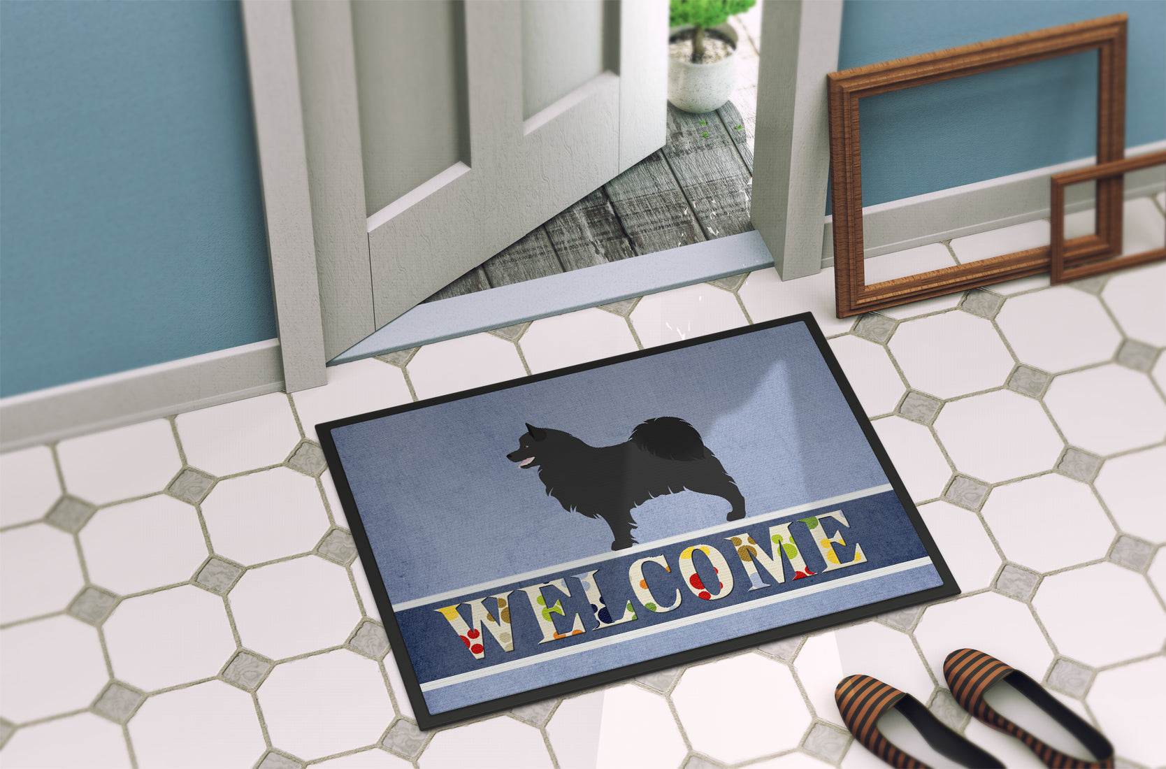 Decorate your space with our Swedish Lapphund artwork on a Doormat. Welcome your guests in style with our Artwork Door Mat, designed to withstand almost any weather condition. This mat, measuring approximately 18 by 27 inches, is held together by durable black binding tape. Its top layer, composed of polyester felt, is dyed with the eye-catching image you see on the mat. A few layers below provide the mat with stability, while its rubber bottom is stamped to help prevent slipping and ensures safety. Our mat works wonderfully as both an indoor or outdoor door mat. For cleaning, simply hose it off with water or use a power washer - no need for any cleaner that produces suds. Avoid scrubbing with a brush, instead, opt for the vacuum on floor setting. Designed manufactured and printed in the USA, this mat is a perfect addition to your porch, outdoor kitchen, entryway, or any indoor space. Its unique design makes it a charming decorative rug that greets your guests and adds a stylish touch to your home decor.