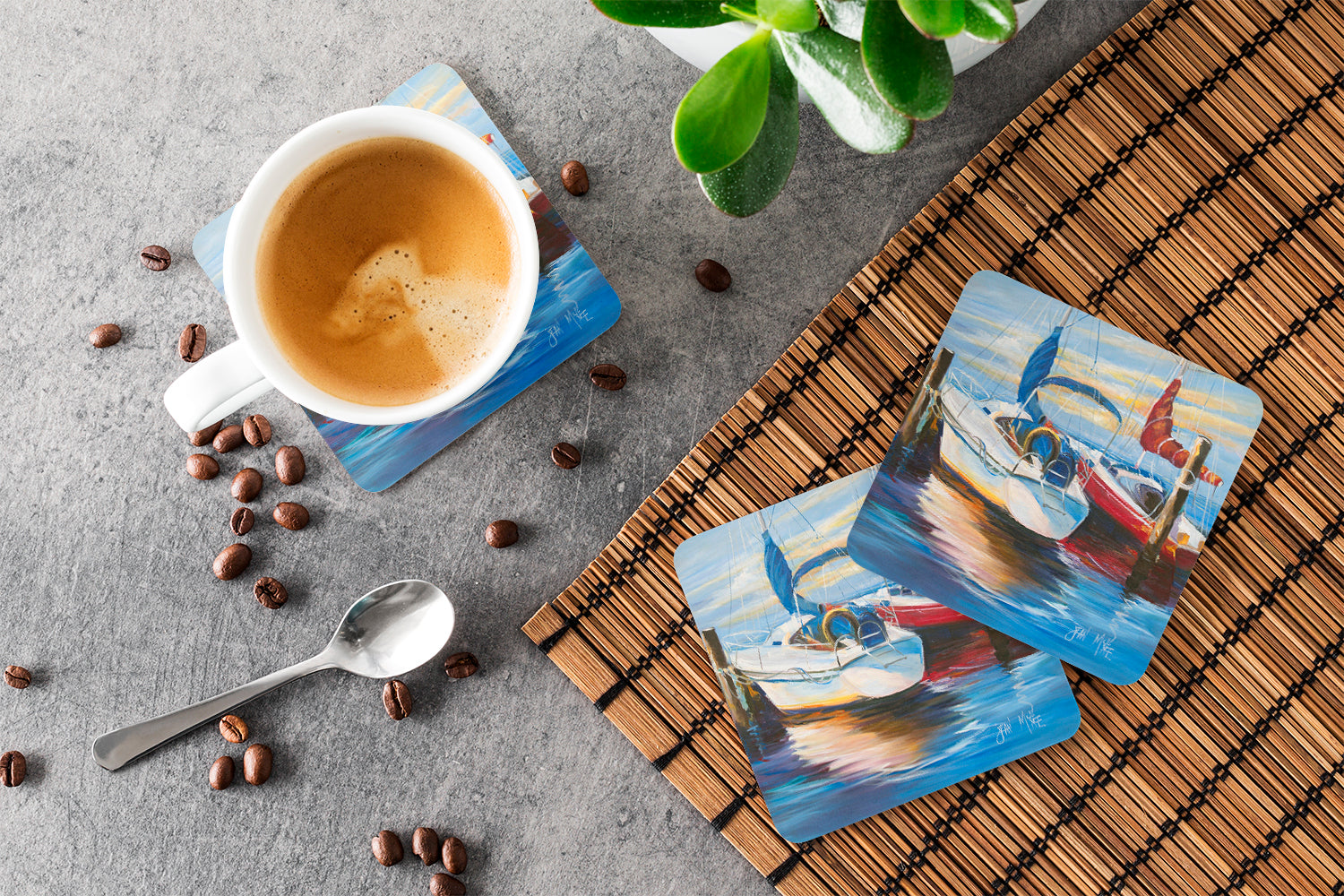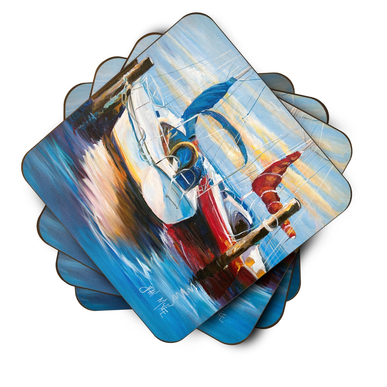 Symmetry Sailboats Coasters - Set of 4 Lightweight Foam, Absorbent Drink Coasters JMK1242FC