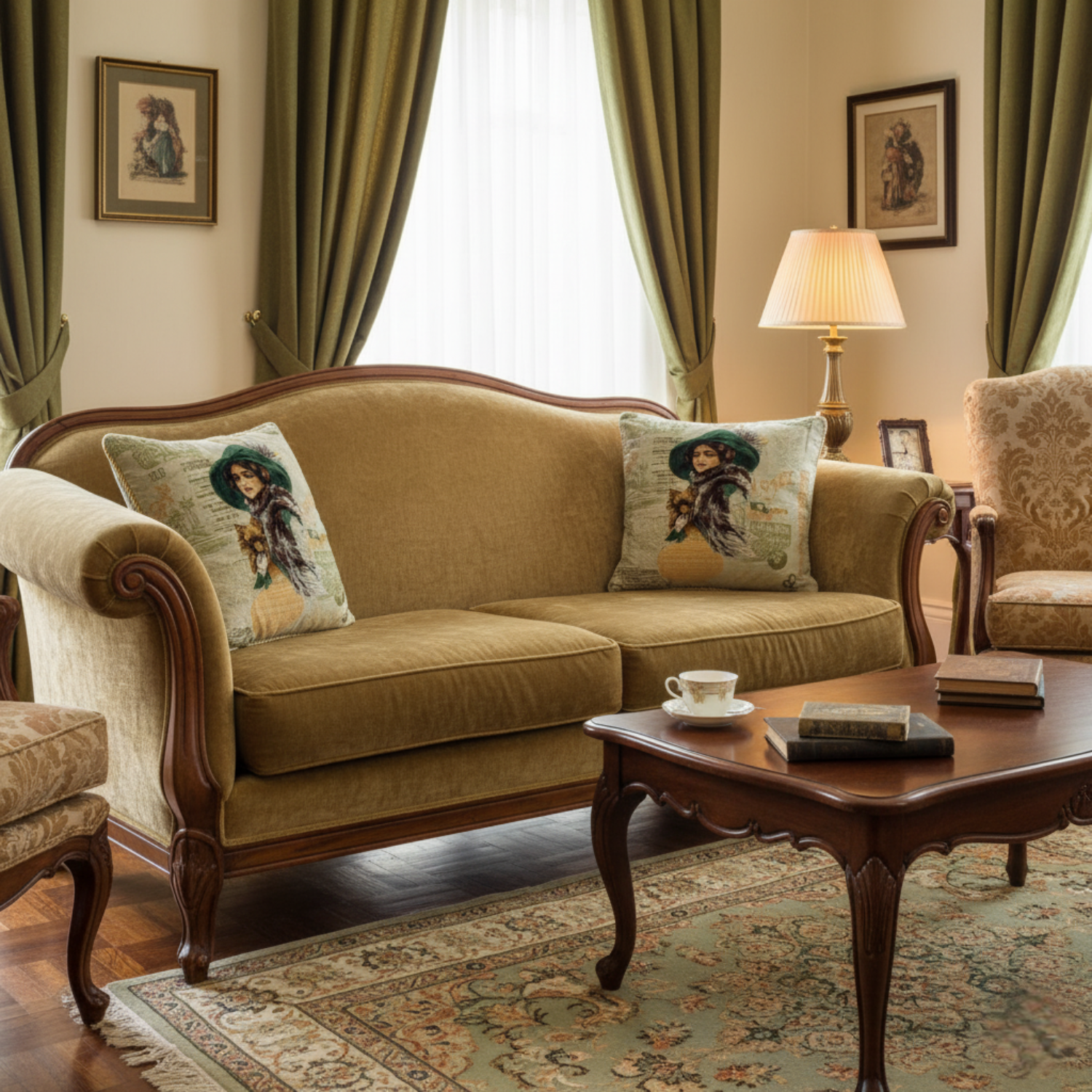 It is just a day on the town with the cute tapestry cushion cover, A sweet pup is on his daily stroll with his adoring human, This beautiful relationship is captured in beautiful woven cushion cover.The front of the pillowcase is a strong, firm upholstery fabric that will take the wear and tear of a room where people live. The back of the pillow is a soft tan fabric. The whole case is edged in a gold cord which gives it a feeling of elegance.