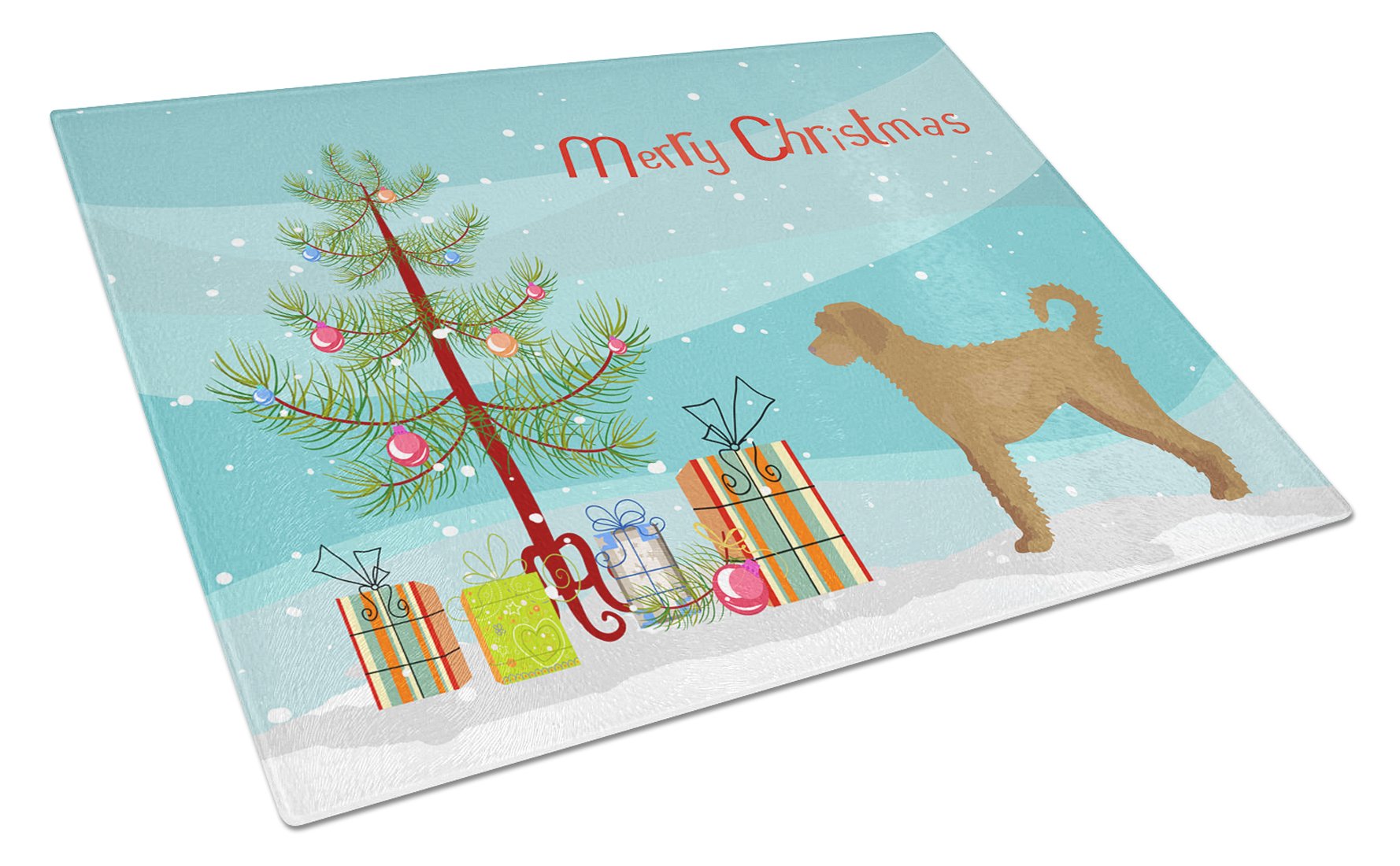 Decorate your space with our Christmas Labradoodle artwork on a Cutting Board. Introduce your kitchen to the vibrant, large Decorative Glass Cutting Board from Caroline's Treasures. Crafted from resilient tempered glass, this board is not only a utilitarian necessity but also a colorful art piece. With its generous dimensions of 15 inches in height and 12 inches in length, it offers ample space for all your cutting needs. Every piece showcases captivating artwork from distinguished artists, bringing an aesthetic edge to your kitchen. Beyond its attractive design, this cutting board ensures your countertop stays pristine and unscathed, owing to its heat-resistant properties. Engineered with user convenience in mind, it features non-skid feet for stability, and rounded corners for additional safety. Its robust construction renders it virtually unbreakable, guaranteeing longevity. The board comes with protective feet bumpers, maintaining its position during use. This product is recommended to be hand washed only. Proudly printed and assembled in the United States, this cutting board exemplifies superior craftsmanship. With Caroline's Treasures' Decorative Glass Cutting Board, you're investing in a blend of functionality and artistic flair.