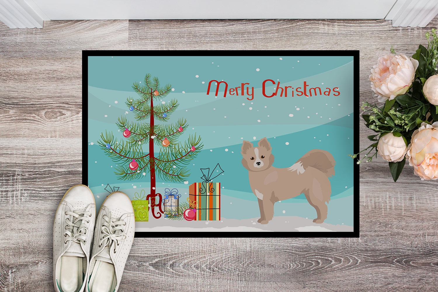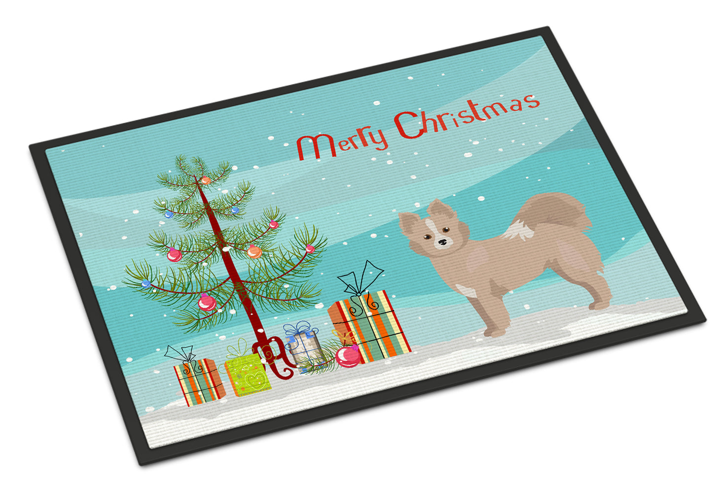 Decorate your space with our Christmas Pomchi artwork on a Doormat. Welcome your guests in style with our Artwork Door Mat, designed to withstand almost any weather condition. This mat, measuring approximately 24 by 36 inches, is held together by durable black binding tape. Its top layer, composed of polyester felt, is dyed with the eye-catching image you see on the mat. A few layers below provide the mat with stability, while its rubber bottom is stamped to help prevent slipping and ensures safety. Our mat works wonderfully as both an indoor or outdoor door mat. For cleaning, simply hose it off with water or use a power washer - no need for any cleaner that produces suds. Avoid scrubbing with a brush, instead, opt for the vacuum on floor setting. Designed manufactured and printed in the USA, this mat is a perfect addition to your porch, outdoor kitchen, entryway, or any indoor space. Its unique design makes it a charming decorative rug that greets your guests and adds a stylish touch to your home decor.